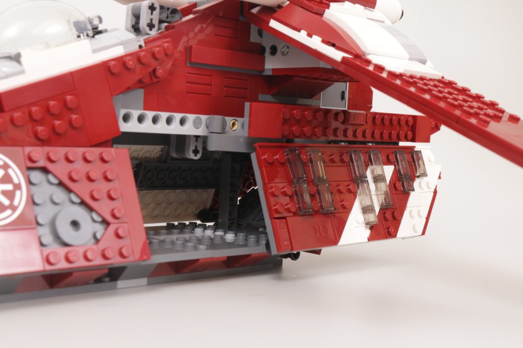 Og det merkes hvis du ser etter det. Hvis du har andre LEGO Gunships å stå ved siden av eller ikke, føles kroppen til modellen litt av hvis du legger den slags oppmerksomhet til den. Ved å trekke inn posisjonen til cockpitene litt for nær midten av karosseriet, og ved å bruke dører som er et par knaster lengre for å dekke over at det bør være to separate dører på hver side som ellers dekker en lengre kropp, Hele modellen har et litt mer tydelig utseende enn den ellers kunne ha.