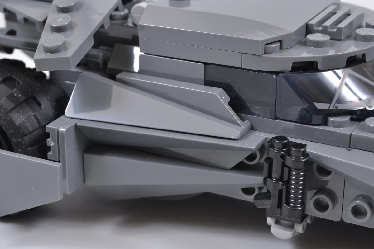 Det forbedrede utseendet oppnås hovedsakelig takket være 76331 Batman mot Superman Batmobilens mange grå elementer, som gjenspeiler filmkjøretøyets mattgrå fargevalg. Den kraftig pansrede formen til Batmobilen gjenspeiles også i de mange skarpvinklede platene, forhjulsbeskytterne, det nye trykte kalesjeelementet og de mye kraftigere dekkene.