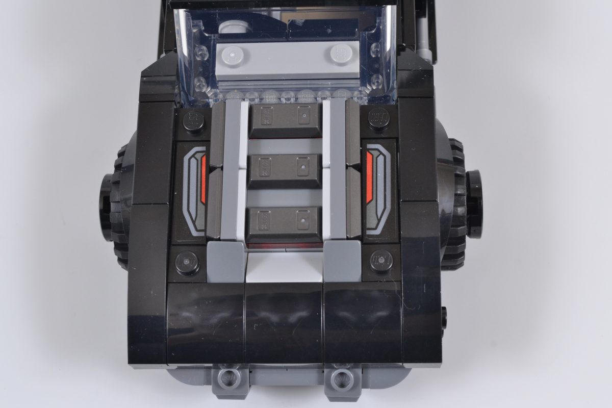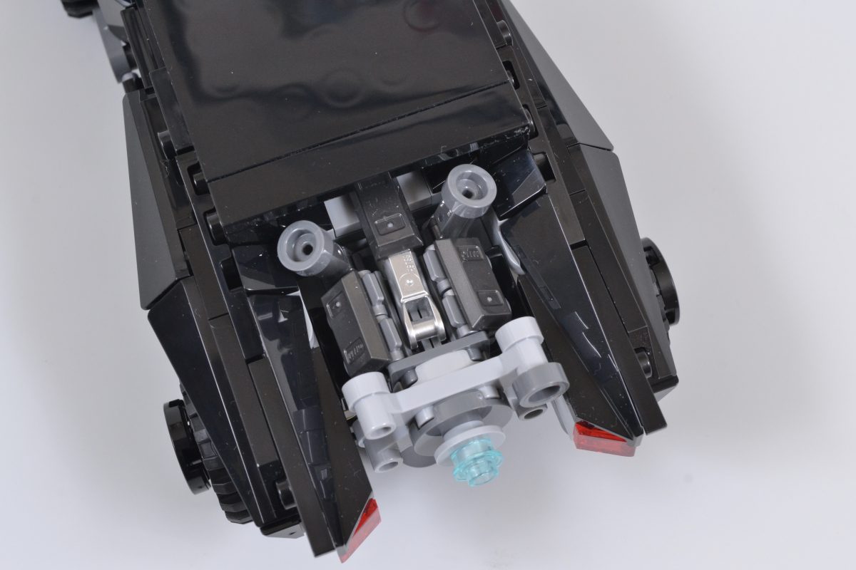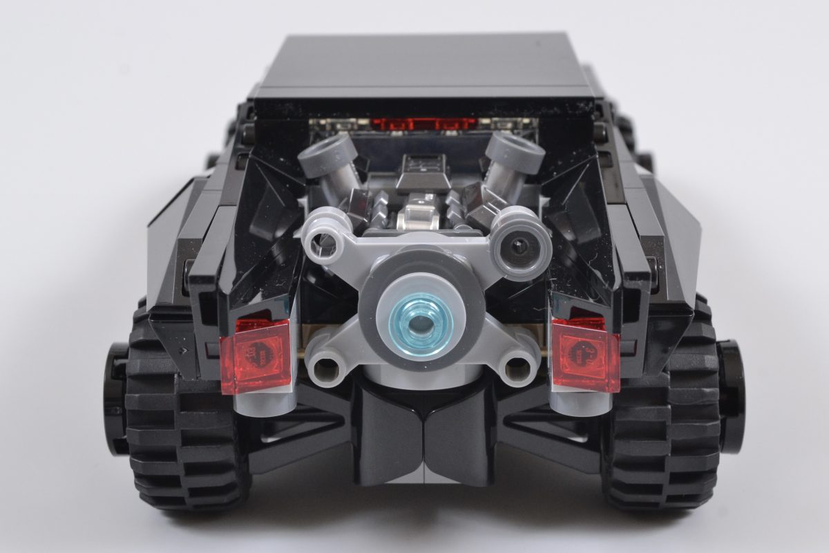 De samme skinnende brikkene dukker også opp i 76332. Batman Batmobiles store bakmotor, en del av konstruksjonen som virkelig bidrar til å understreke kjøretøyets muskelbil-opprinnelse, og hinter til den rå, uhemmede kraften som stritter bak det uhyggelige eksteriøret.