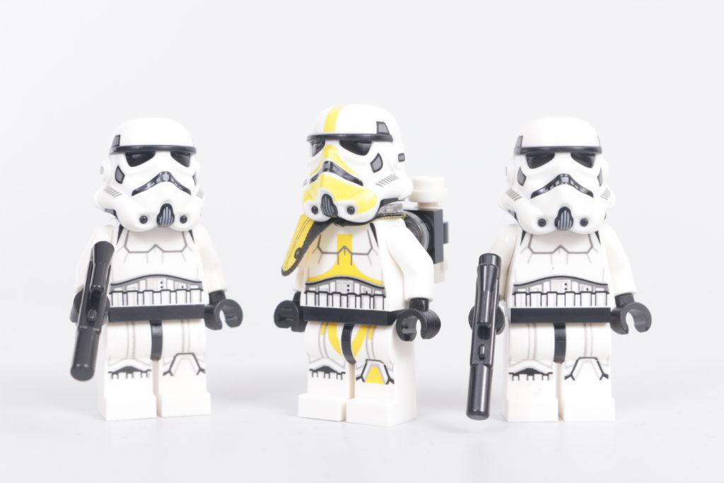 Du finner den nyeste Stormtrooper-serien i hyllene for øyeblikket i 75419 Dødsstjerne og 75394 Imperial Star Destroyer. 75425 Mos Eisley Cantina vil introdusere en annen Sandtrooper-variant (komplett med en støpt pauldron) 1. mars, og er tilgjengelig for forhåndsbestilling nå.