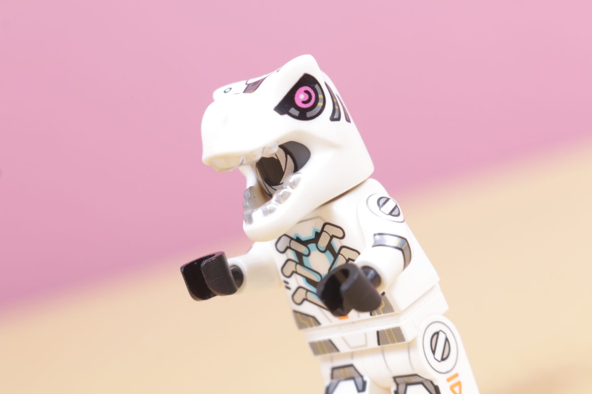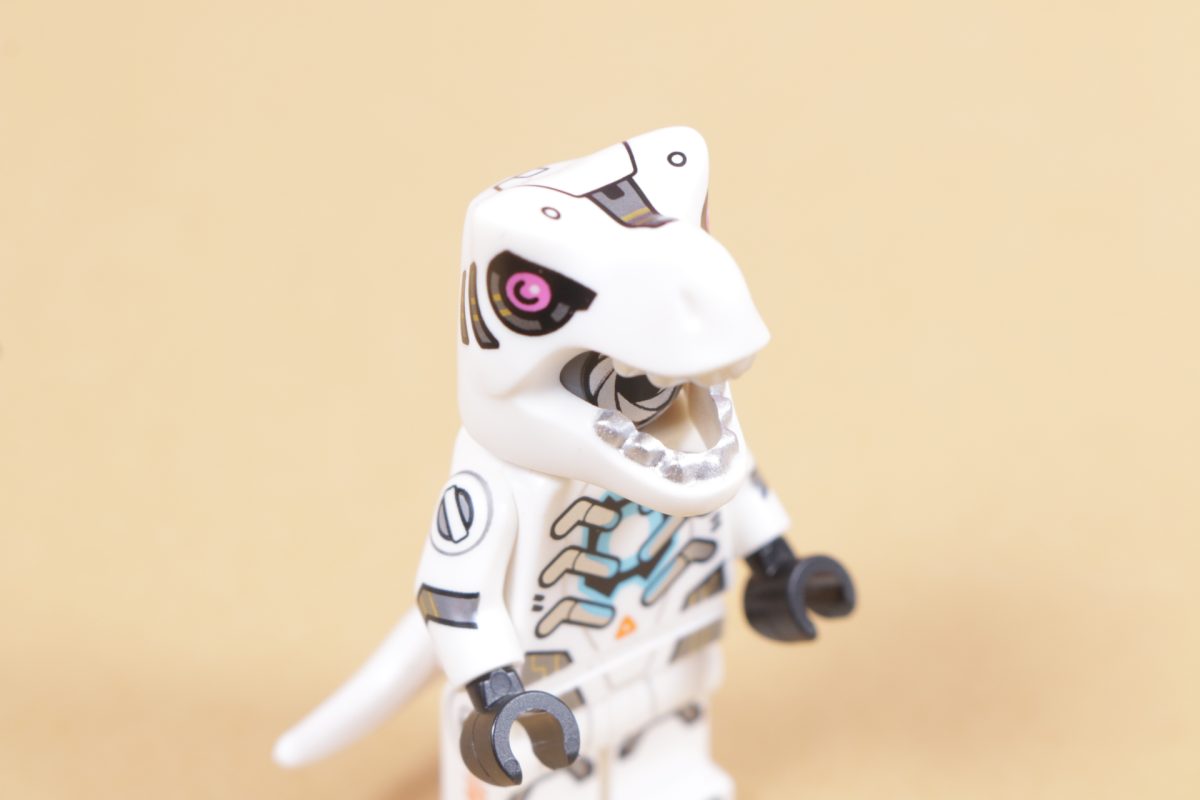 Når det er sagt, er denne tilnærmingen til elementet slående og oppfinnsom. I stedet for å bruke dette som et kostyme, slik det var tidligere, er det denne gangen brukt til å lage en robotdinosaur. Blenderåpningen som er trykt på minifigurens hode er et inspirert preg, og fargevalget og trykkdesignet er kult, elegant og effektivt.
