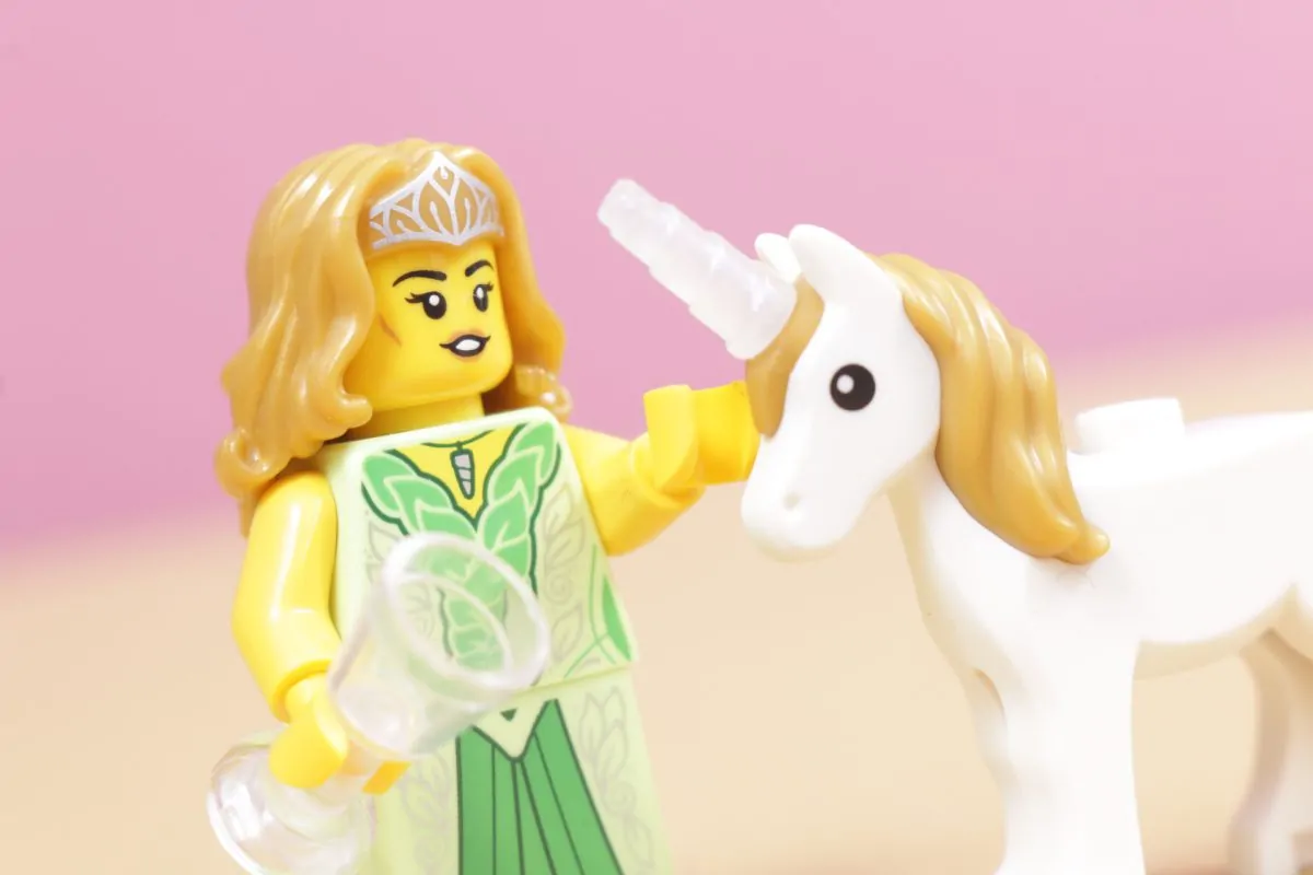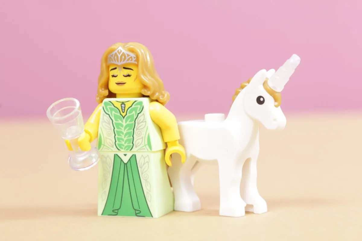 Denne typen middelalder- eller fantasijomfruer dukker opp nå og da i Collectible MinifigurerSerie 17, for eksempel, hadde en alvejomfru som var litt mer av en kriger enn denne nye figuren. Denne gangen kommer imidlertid en relativt enkel (om enn pent detaljert) minifigur med noe spesielt: en ny fargekombinasjon for enhjørningen som debuterte i 2025. 31175 Unicorn Castle.