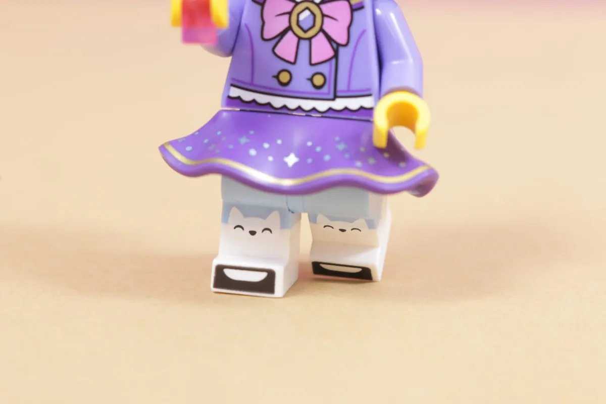 Denne minifigurens beste egenskap er imidlertid beina. De er ikke bare dobbeltstøpte, men de er også trykt med søte smilende kattestrømpebukser – dette er en fantastisk liten detalj som bidrar til å løfte det som allerede er en utrolig sjarmerende minifigur.