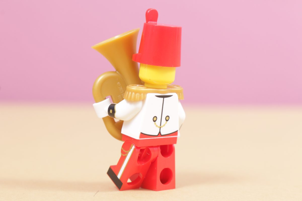 Se utover dette, og resten av minifiguren er også solid, en gjenbruk av eksisterende elementer med smart trykk og et fargevalg som gjør at Tuba Player skiller seg fra bandmedlemmene som finnes i 11371 HandlegateDen eneste ulempen med denne minifiguren er at alle som vil fylle en scene med et fullt marsjerende band, må kjøpe mange av dem!