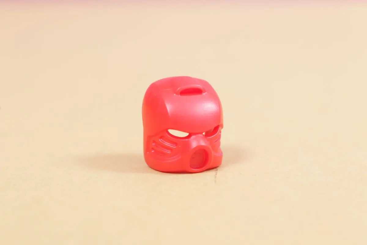 BIONICLE-cosplayeren er egentlig ikke Tahu, den originale ildtoaen og den mest gjenkjennelige av BIONICLE-designene fra 2001. Dette fremgår tydelig, ikke av det imponerende nøyaktige maskedesignet, men snarere av hodet under. Dette er trykt på den ene siden for å se ut som et minifiguransikt, komplett med et rosa pannebånd som bærer LEGO-figuren. Batman tilnærming til Tahus øyne som skinner gjennom masken. Den andre siden av hodet viser det rosa båndet som er knyttet bak.