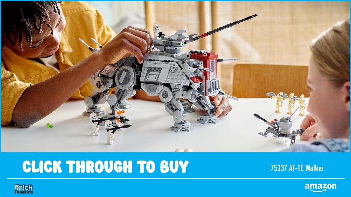 75337 AT-TE Walker er en av de største og beste LEGO-figurene Star Wars Sett å kjøpe og bygge hærer med. Den ikoniske Republic-vandreren har mange minifigurer, med bare én navngitt figur for å sikre de mer nyttige repeterende minifigurene, samt en skvadron med droider å kjempe mot.