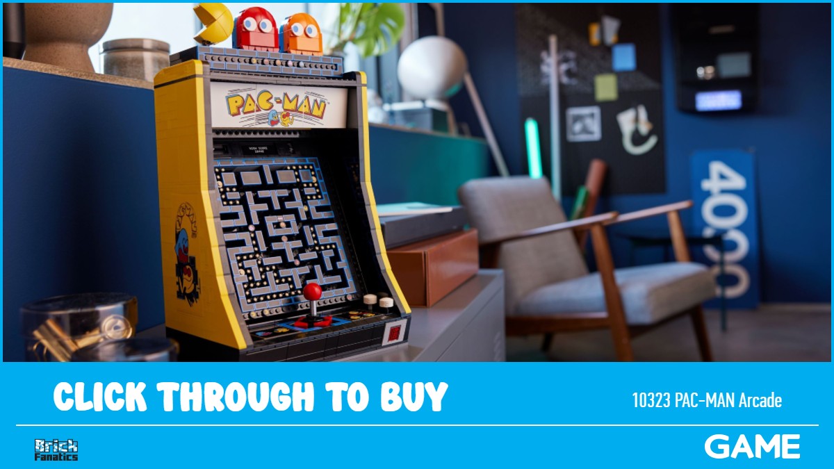 Ikke overse den forbløffende funksjonaliteten til 10323 PAC-MAN ArcadeMaskinreproduksjonen har 2,651 deler og én eksklusiv minifigur, som fungerer som den ultimate hyllesten for PAC-MAN-fans som også er LEGO-entusiaster. Den vil sannsynligvis imponere gjestene med den fungerende PAC-MAN-spillreproduksjonen, og den kommer med to utstillinger, selve maskinen, samt PAC-MAN- og spøkelsesskulpturen som står oppå den.