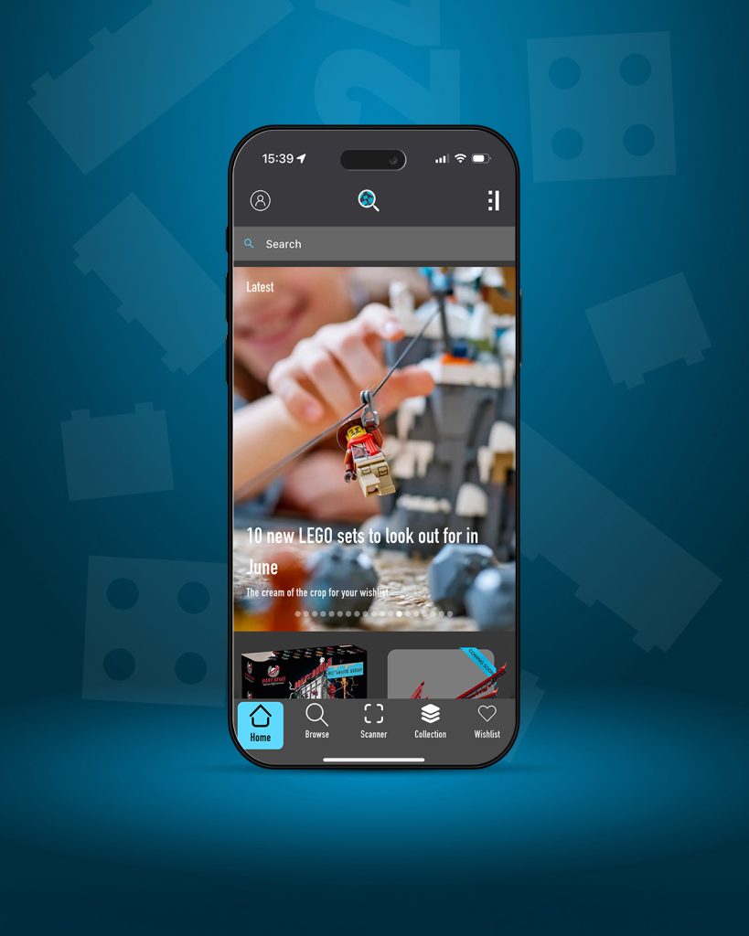 Brick Search-brukere vil også se en ny innholdsglidebryter øverst på den nye startskjermen. Det er her du finner dyptgående titt på nye sett, LEGO-nyheter og mer. For øyeblikket kan Brick Search-brukere: