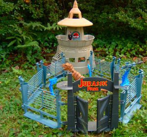 Den hellige gral for barn som elsket Jurassic Park tilbake i 1993 var Command Compound. Denne massive plastklumpen, som kanaliserte de gigantiske GI Joe-lekesettene fra 1980-tallet, inneholdt en lukket paddock, laboratorium og kommandosenter modellert i estetikken til besøkssenteret fra filmen. Det var linjens ultimate leketøy. LEGO-designere så ut til å kanalisere det i både det største settet fra Dino og Jurassic WorldDen opprinnelige bølgen, men Dino-en virker mest lik med svingende porter, gittergjerder og forhøyet kommandorom som ser ned over alt. Dino Defense HQ var også kjent for å inkludere alle de støpte dinosaurene opprettet for temaet, som har dukket opp senere Jurassic World settene.