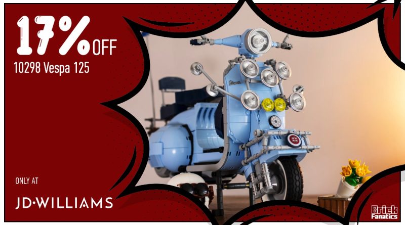 Vi vet ikke hvor lenge denne avtalen varer LEGO ikoner 10298 125 XNUMX Vespa XNUMX vil vare, så gå til JD Williams å ta opp rabatten før den er borte. Med £15 rabatt akkurat nå, er det ingen tid å kaste bort på LEGO ikoner angitt.
