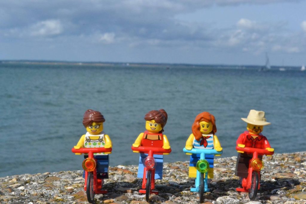 Disse minifigurene nyter en sykkeltur ved sjøen.
