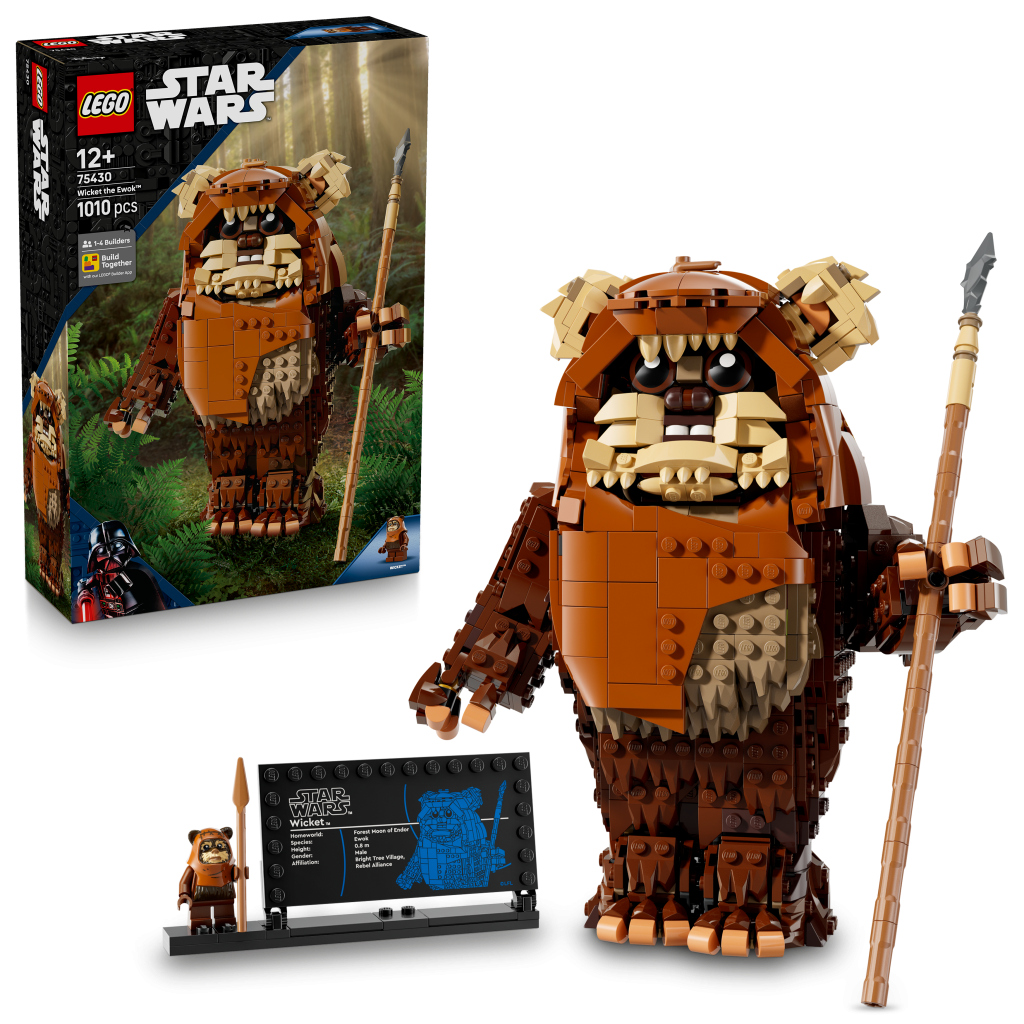 Den siste LEGO Star Wars en byggbar karakter som skal avsløres er 75430 Wicket the Ewok, som er over 23 cm høy. Byggesettet på 1,010 deler inkluderer et avtakbart spyd og en klossebygd godbit for å bringe figuren til live, og minnes hans snacksbaserte forbindelse med prinsesse Leia.