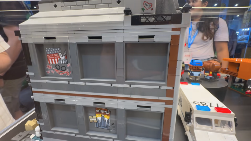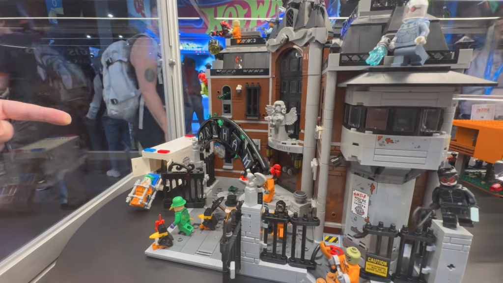 Disse bildene gir oss en klarere forståelse av modellens størrelse, samt et første glimt av bakveggen med cellene omsluttet (som ikke vises på settets offisielle bilder). Vi kan også bedre se de forskjellige klistremerkene påskeeggene på utsiden, sammen med de ødelagte veggene spredt rundt omkring som tyder på at Arkham Asylum allerede har sett sin del av utbrudd.