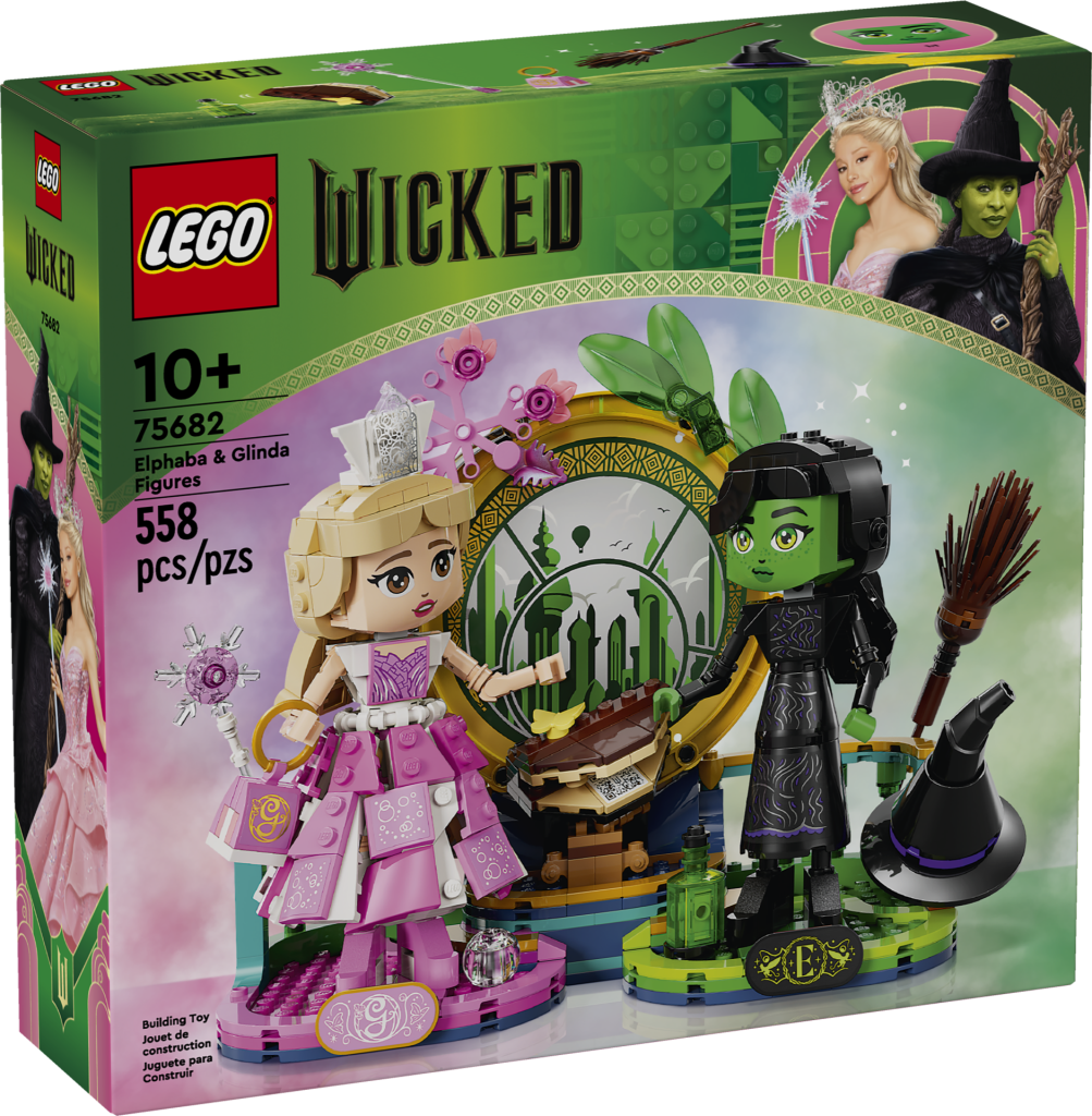 LEGO Wickeds byggbare figurer har en uvanlig tilnærming til store figurer, og etterligner proporsjonene til minidukker ved hjelp av det som ser ut som nye store håndelementer. Produktbeskrivelsen antyder 75682 Elphaba & Glinda figurer gjenskaper spesifikt øyeblikket Elphaba lærer å trosse tyngdekraften, slik sangen heter, med et byggbart vindu som vender ut mot Oz, Ephabas kost og mer.