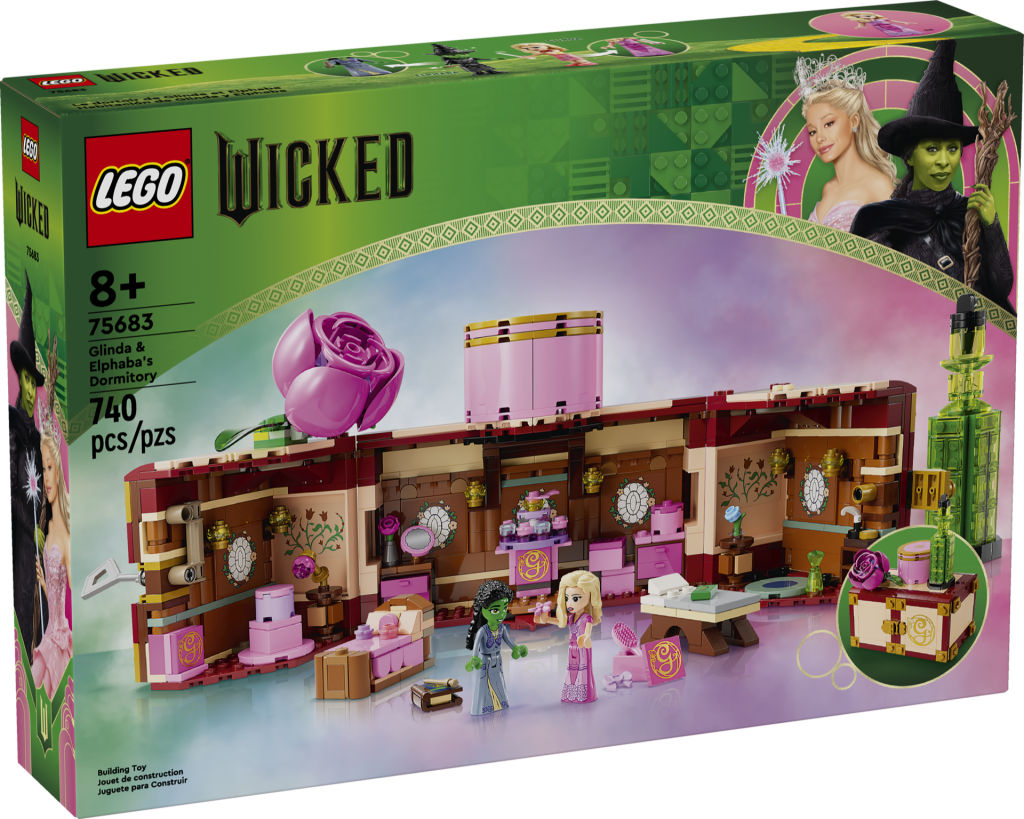 Tilbake i lekesettets territorium, 75683 Glinda & Elphabas sovesal gjenskaper den dynamiske duoens Shiz Uni sovesal, med to antrekk hver for hver av karakterene. Ved siden av QR-koden som spiller av en sang fra filmen, kan du også plassere minidukkene på roterende plattformer for å få dem til å danse i takt til musikken. Hele modellen kan også lukkes opp for å danne en stamme, komplett med Glindas blomst og Elphabas grønne flaske.