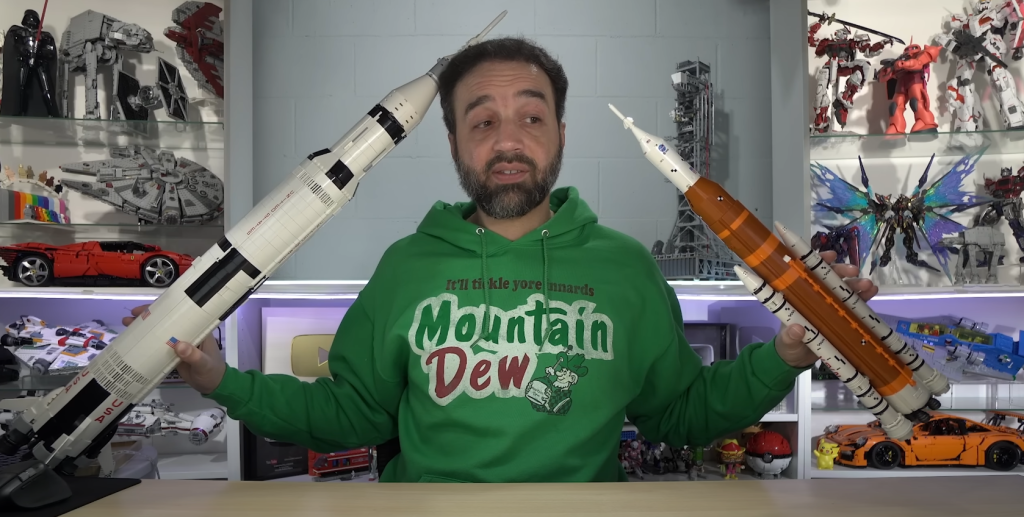 Med en pensjonert og en tilgjengelig for øyeblikket, LEGO YouTuber JANGBRiCKS har begge i hånden og har demonstrert den enorme størrelsesforskjellen mellom de to rakettene.