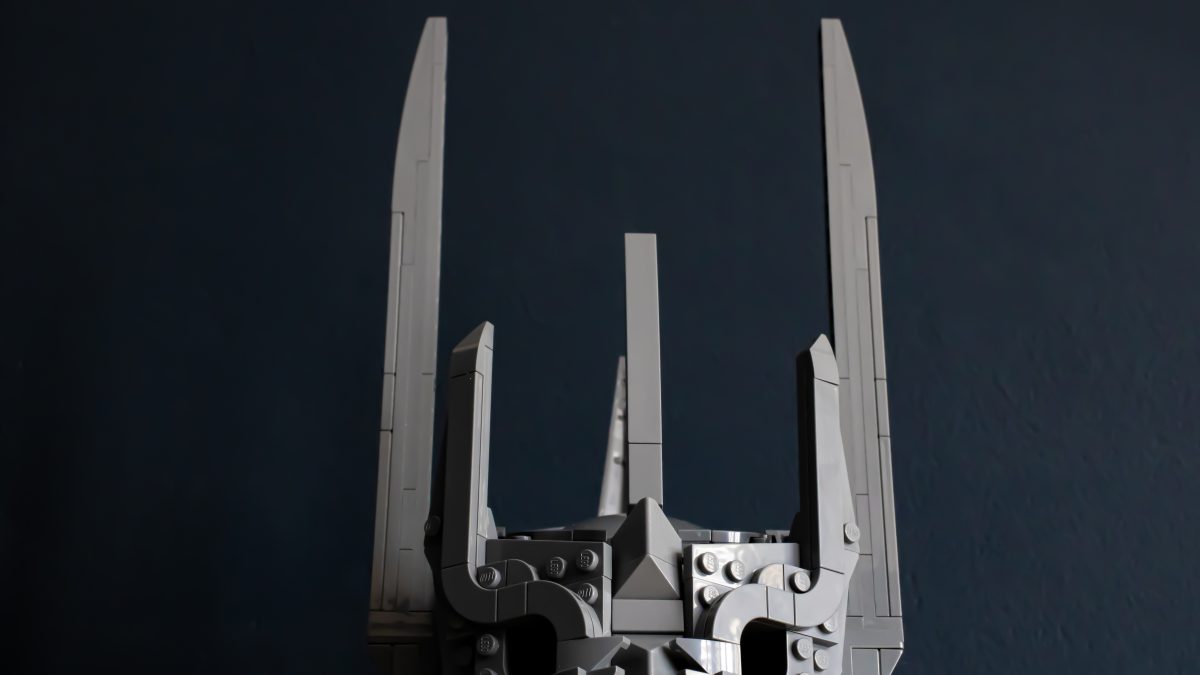 Takket være de gigantiske piggene på hodeplagget hans, 11373 Ringenes herre: Saurons hjelm er faktisk en av de høyeste LEGO-hjelmene hittil, og har en imponerende silhuett (som den skal). Modellen måler 33 cm høy og 13 cm bred.