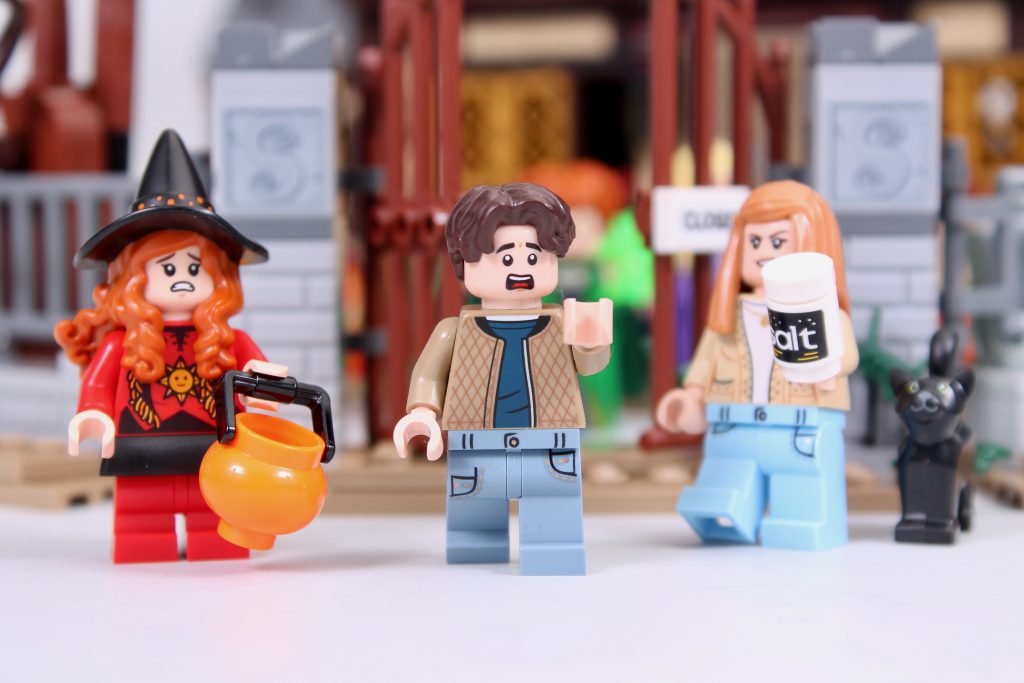 Kanskje det største stikkpunktet med 21341 Disney Hokus Pokus: Sanderson Sisters' Cottage – i hvert fall for fans av filmen – kommer i minifigurserien. Veyt foreslo opprinnelig å inkludere 11 karakterer i settet, men Disney tilsynelatende slo det ned til bare seks: de tre Sanderson-søstrene Winifred, Sarah og Mary, sammen med Max, Dani og Allison. Thackery Binx klemmer seg inn som en forbannet katt, og plasserer denne vaktlisten i 1993 i stedet for 1693.