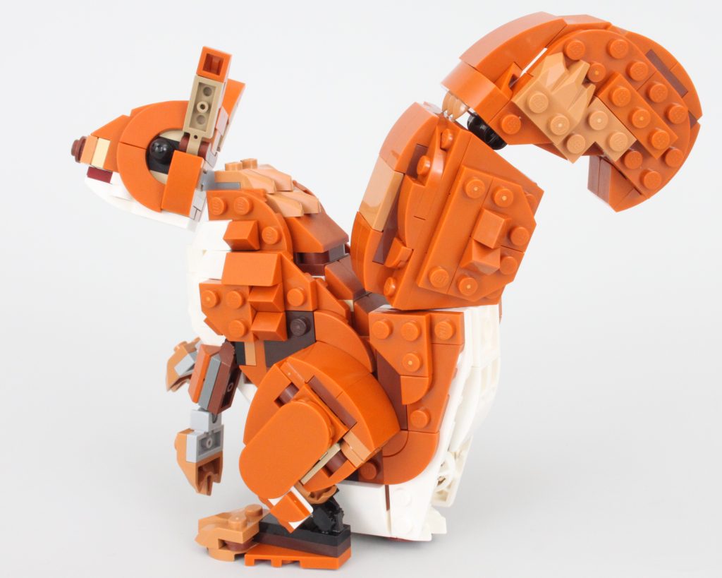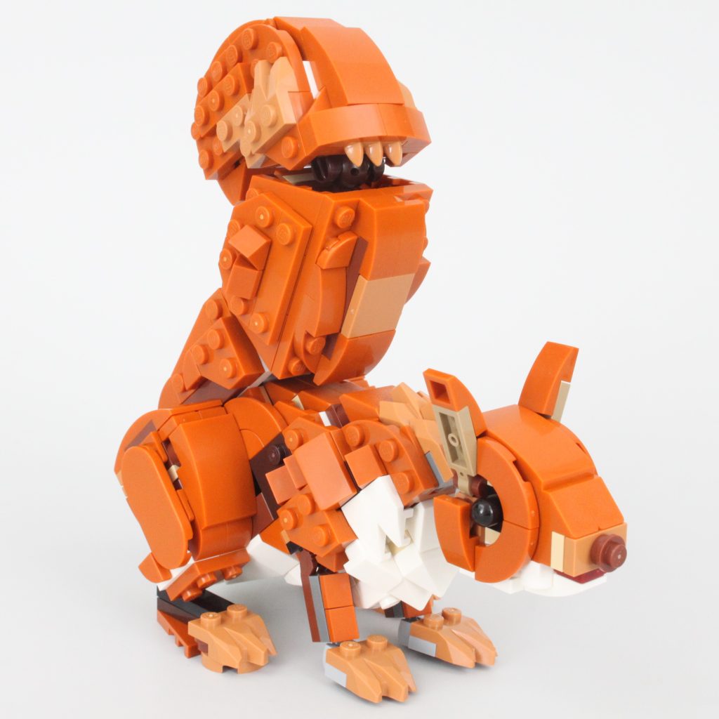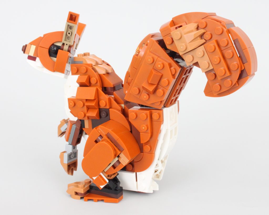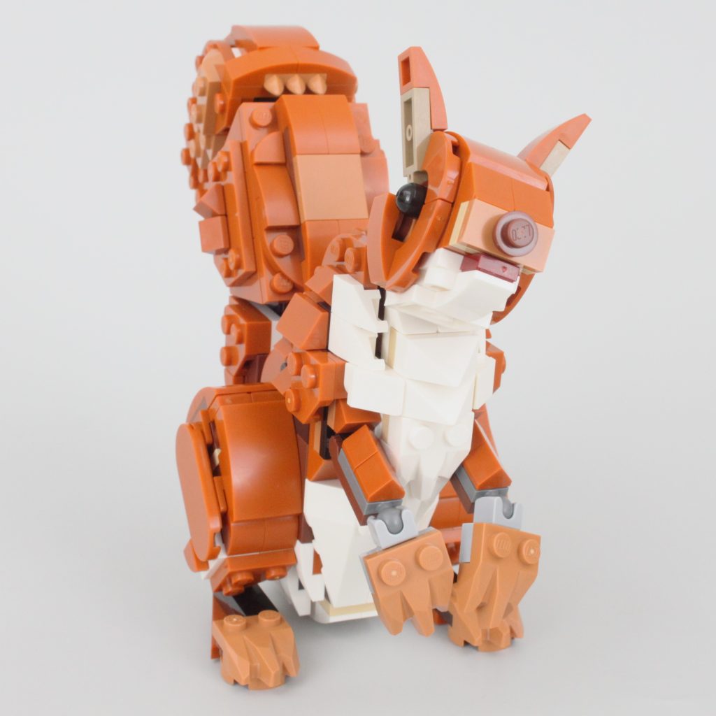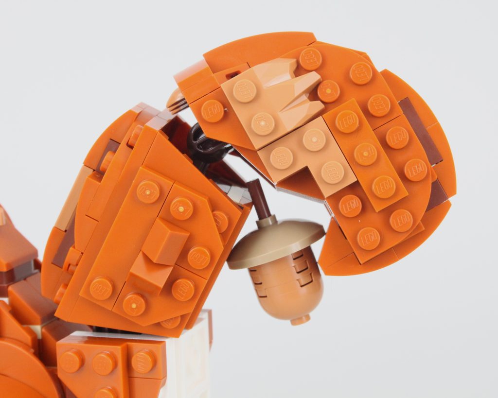 Uten tretilbehør å koble det sammen med – bare et enkelt eikenøtt – er ekornet den minste av de tre kreasjonene i 31154 Skogsdyr: Rødrev og selv om den totalt sett ikke er like sterk som reven, er poseringsmulighetene nesten på nivå med det større dyret.