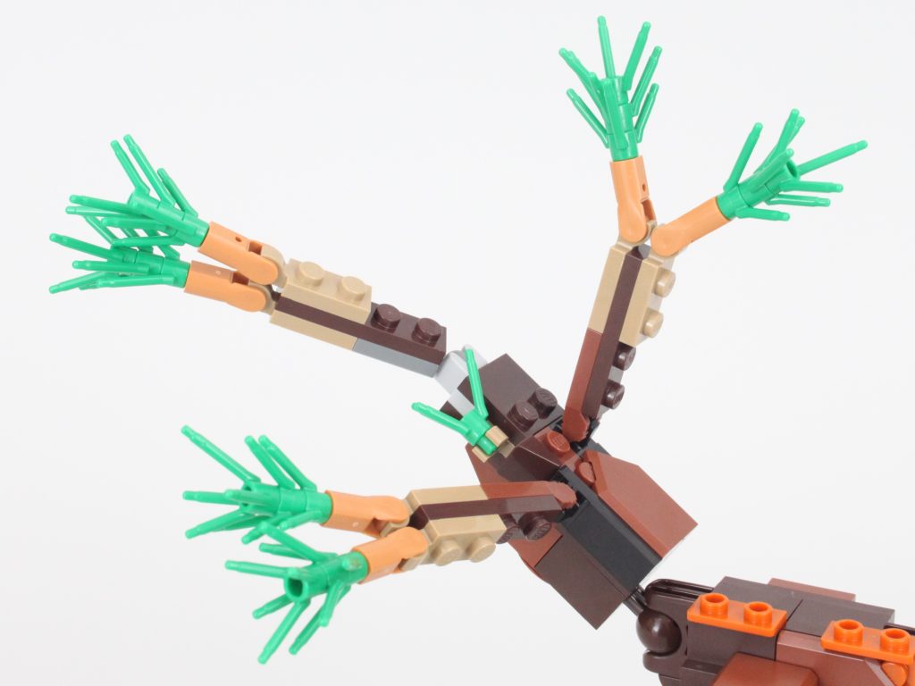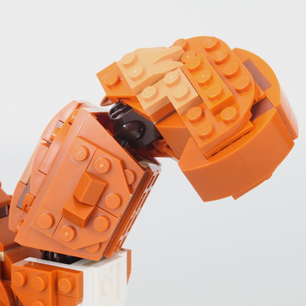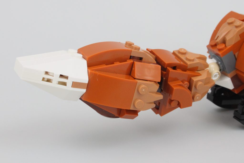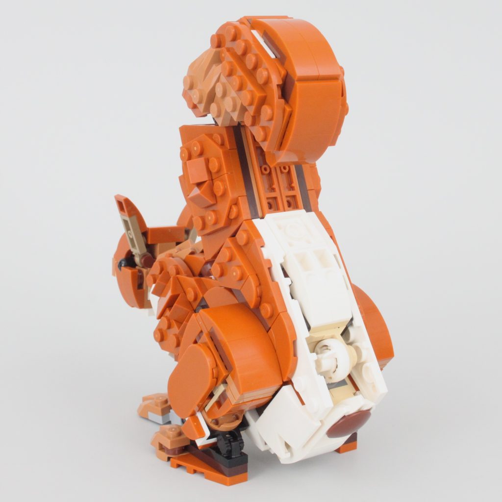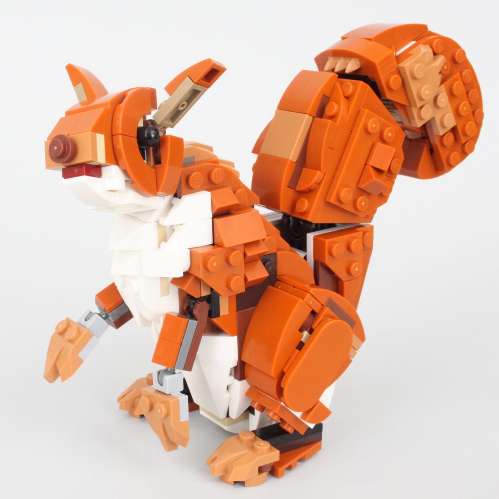 Uten tretilbehør å koble det sammen med – bare et enkelt eikenøtt – er ekornet den minste av de tre kreasjonene i 31154 Skogsdyr: Rødrev og selv om den totalt sett ikke er like sterk som reven, er poseringsmulighetene nesten på nivå med det større dyret.