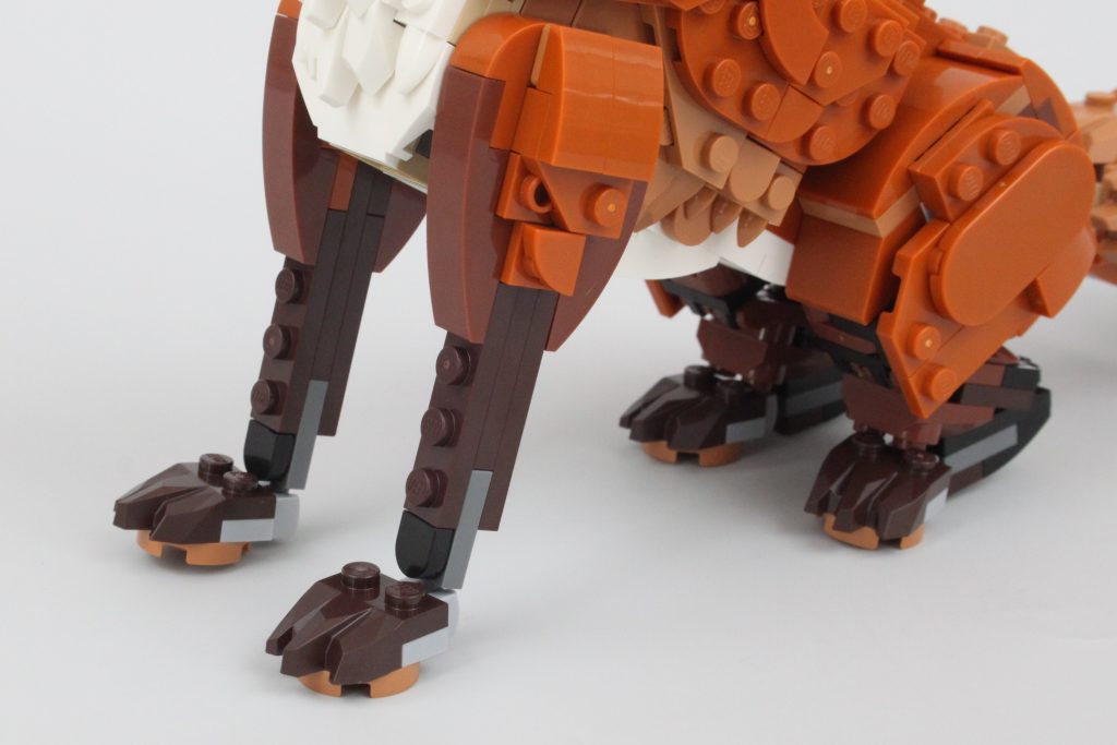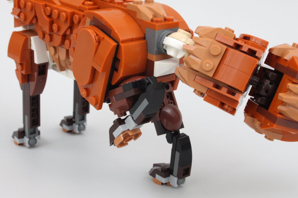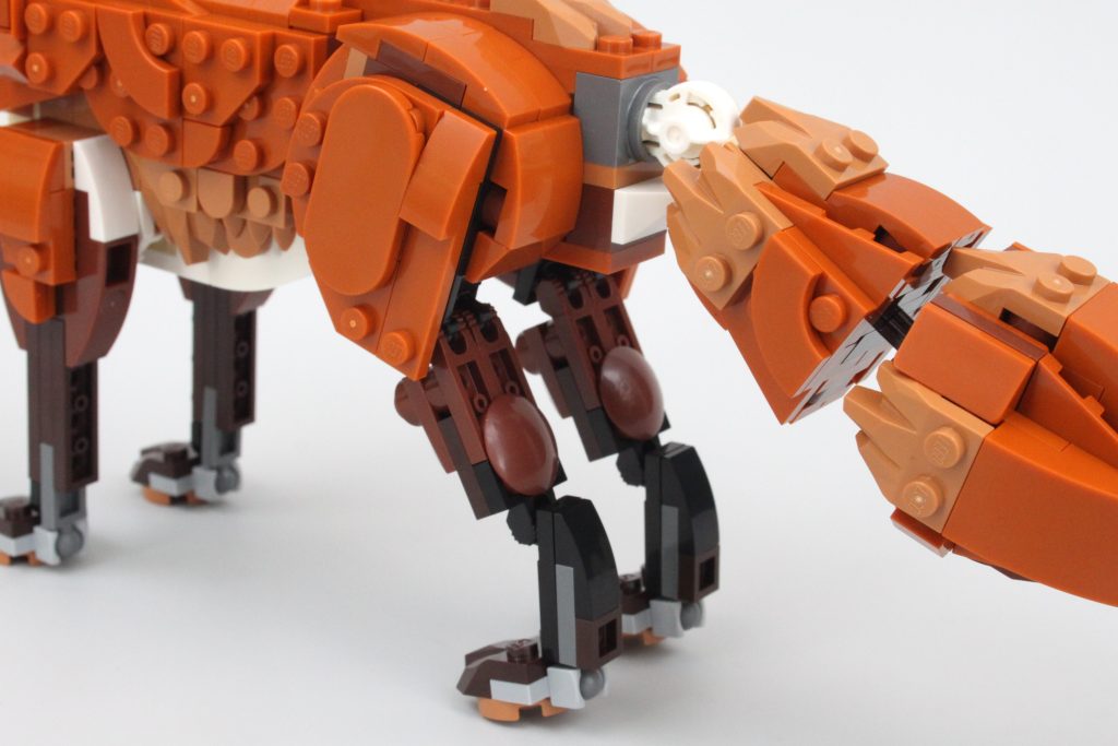 Revens kropp er like imponerende som hodet og halen er et spesielt høydepunkt. Et par enkle leddelementer har blitt brukt med stor effekt for best mulig å posere halen samtidig som den beholder formen, til tross for et synlig gap. Ellers er hull umerkelige på tvers av hovedmodellen, og det hjelper reven til å føle seg mye mer naturtro enn de fleste andre LEGO-sett.