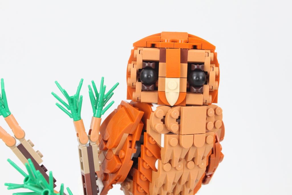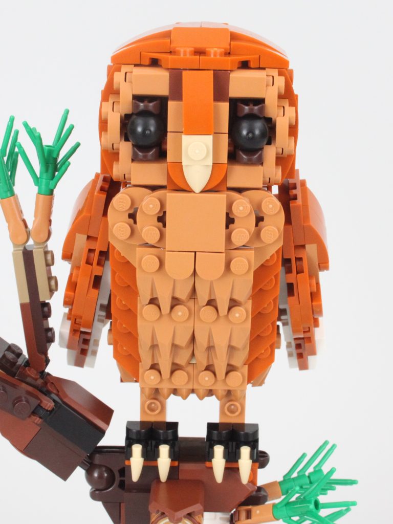 Til tross for at vingene er på kuleledd, er de nesten helt låst på sidene og kan ikke spres utover. Selv om den er plassert på grenen, er dette fornuftig, men den bokstavelige forbindelsen til treet er i beste fall svak. Ellers kan hodet rotere 360 grader som du forventer av en LEGO ugle.