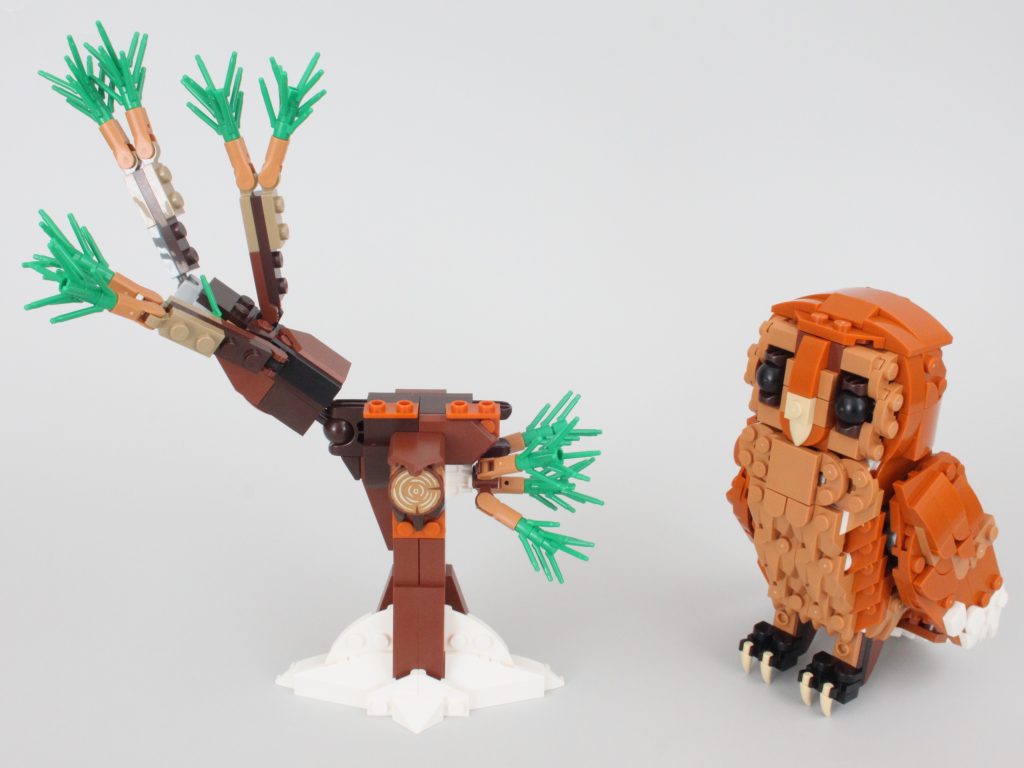 Treet i seg selv er godt nok og føles mer omfattende enn det gjør for reven, til tross for at det har samme størrelse totalt sett. Likevel kan en mer omfattende ugle som bruker noen av disse brikkene ha vært foretrukket med større poseringsmuligheter, lik den imponerende revemodellen.