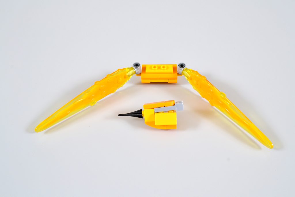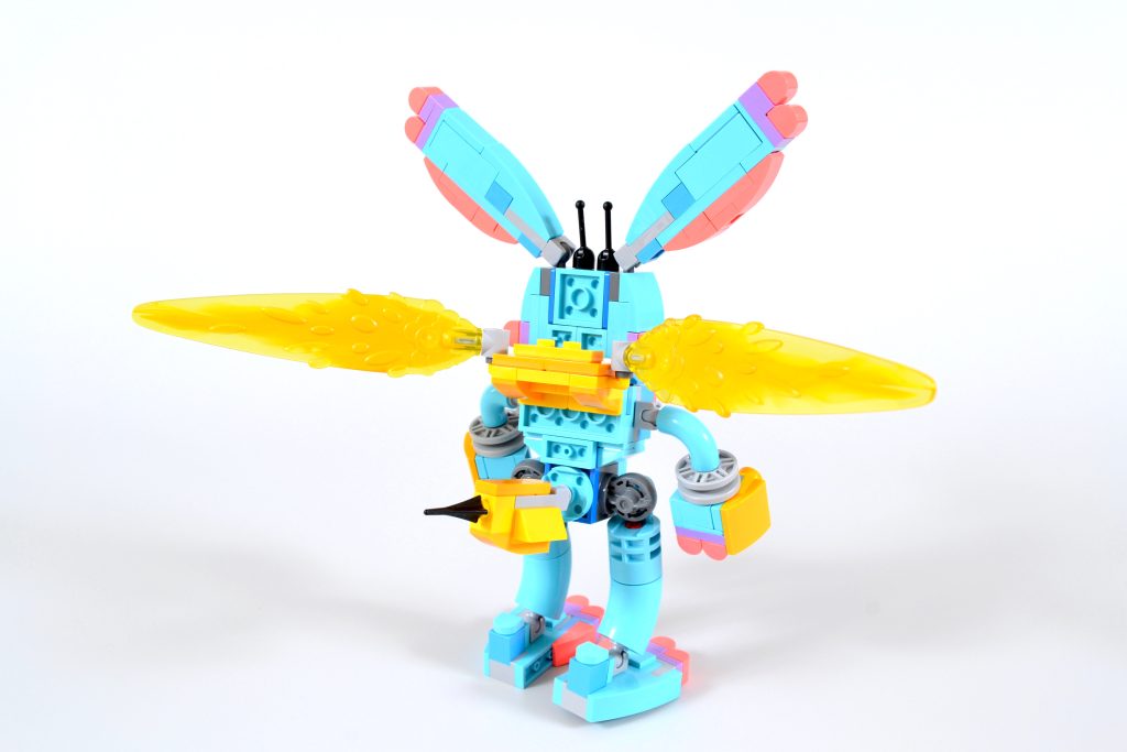 Selv med fire hjul på bunnen av hver rulleskøyte, klarer Bunchu fortsatt å stå oppreist, med to nye knallgule flammeelementer som gir mye stabilitet. Ved å bytte til biestikker og vingene gjenbrukes de samme delene, slik at minifiguren av Izzie kan plasseres på kaninens rygg og kontrollere drømmekreasjonen hennes via to praktiske spaker.