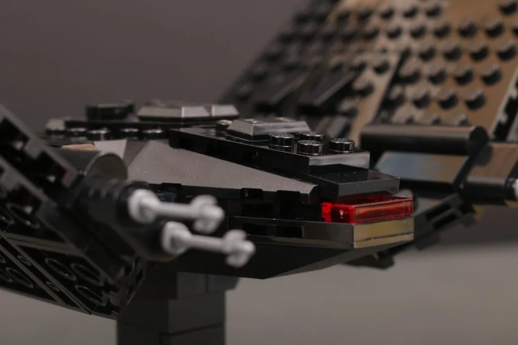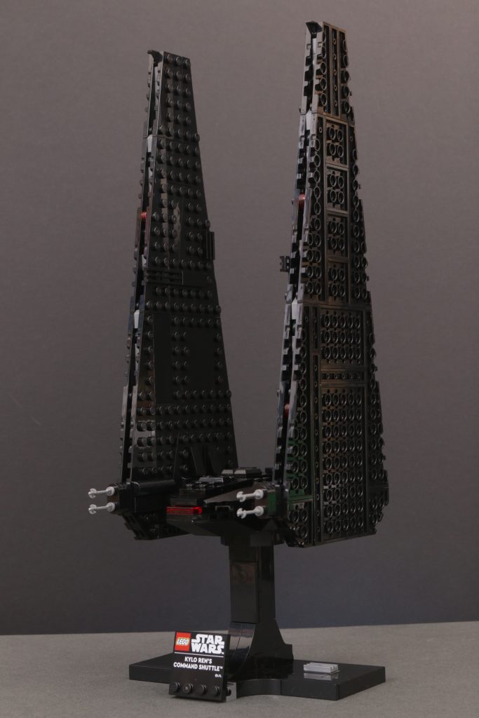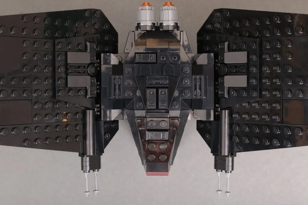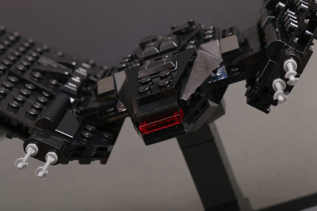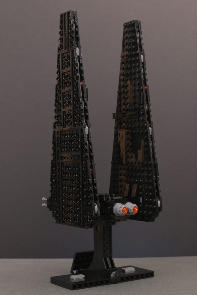 Kort sagt, vingene er massive og de skaper dette ganske utrolig imponerende skipet når det er ferdig. I landingsmodus står de utrolig høye i rimelig forhold til skipets kropp, mens de i flymodus fyller utrolig mye plass for å skape en aura som de to minifigurskala-versjonene av dette samme skipet aldri egentlig kunne.