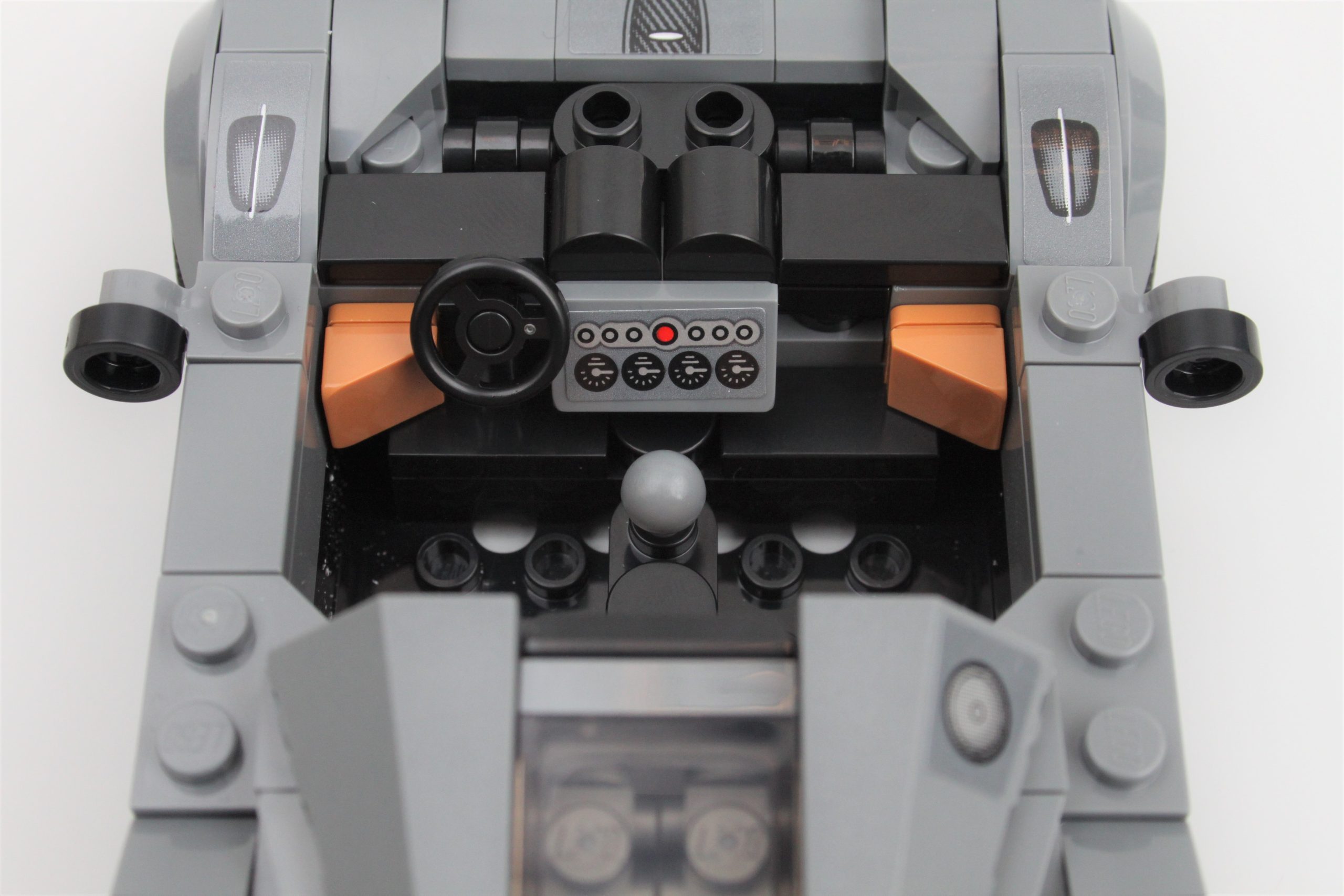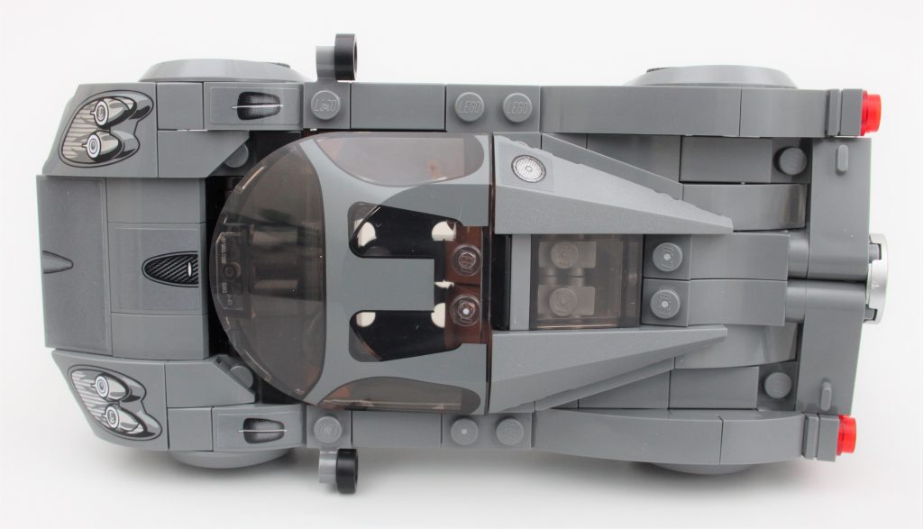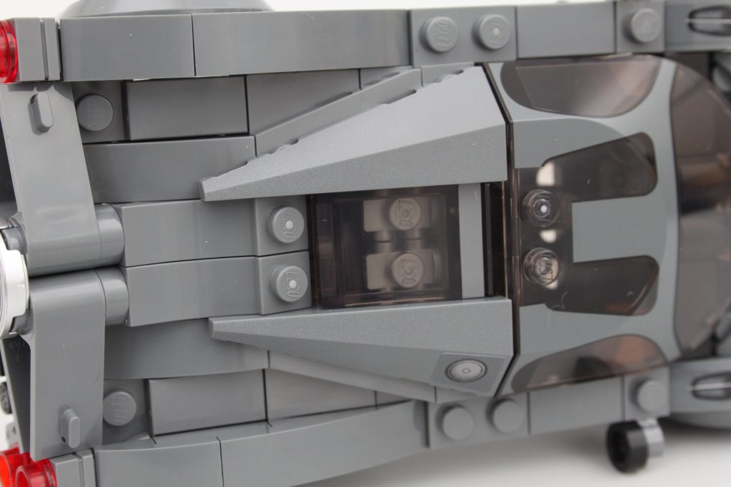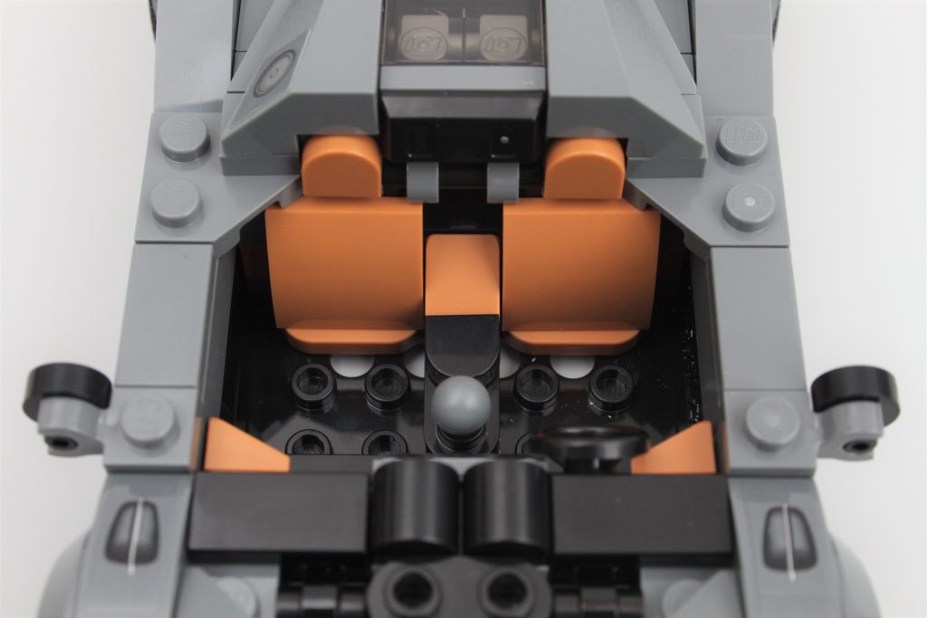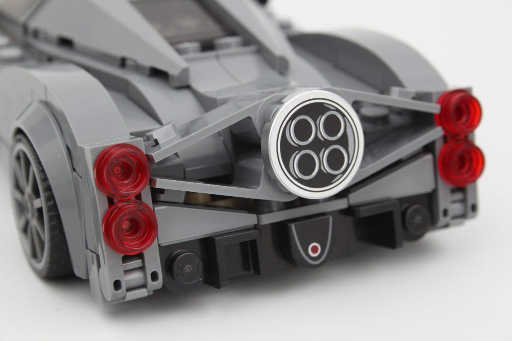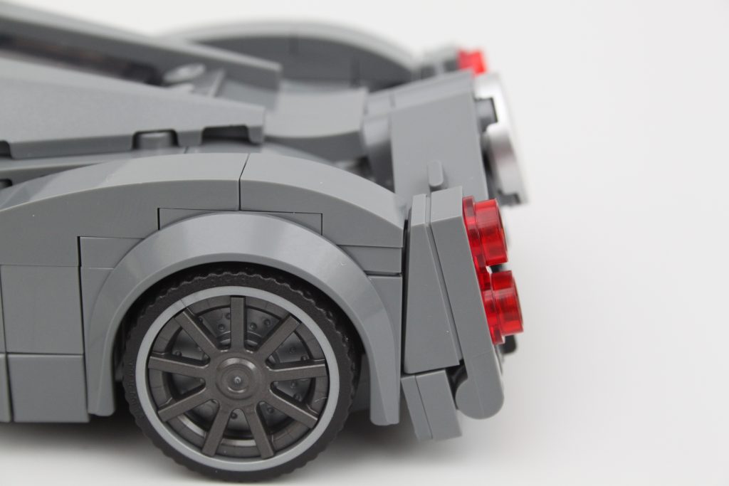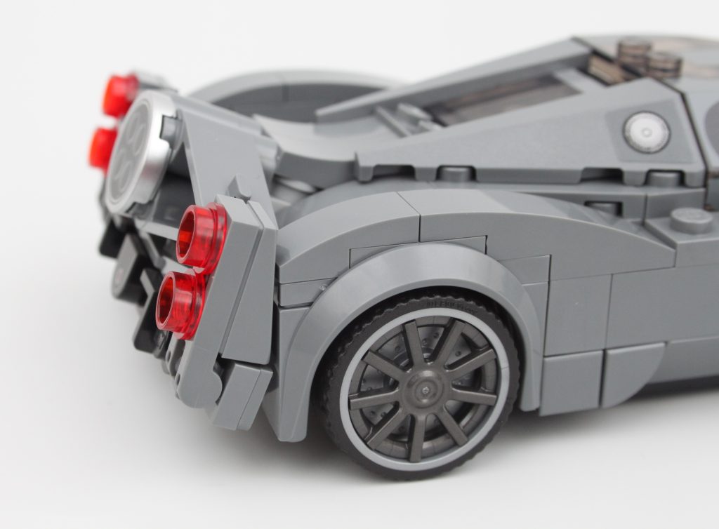 Med fokus på baksiden av konstruksjonen, er det enestående eksosens trommellakkerte element et verdsatt preg, selv om det er trykt på en måte som ser bedre ut i visse vinkler. Det er en uventet detalj som føles nesten unødvendig, men dybden den tilfører fra disse vinklene er et nivå av fordypning som sjelden sees i LEGO-sett.