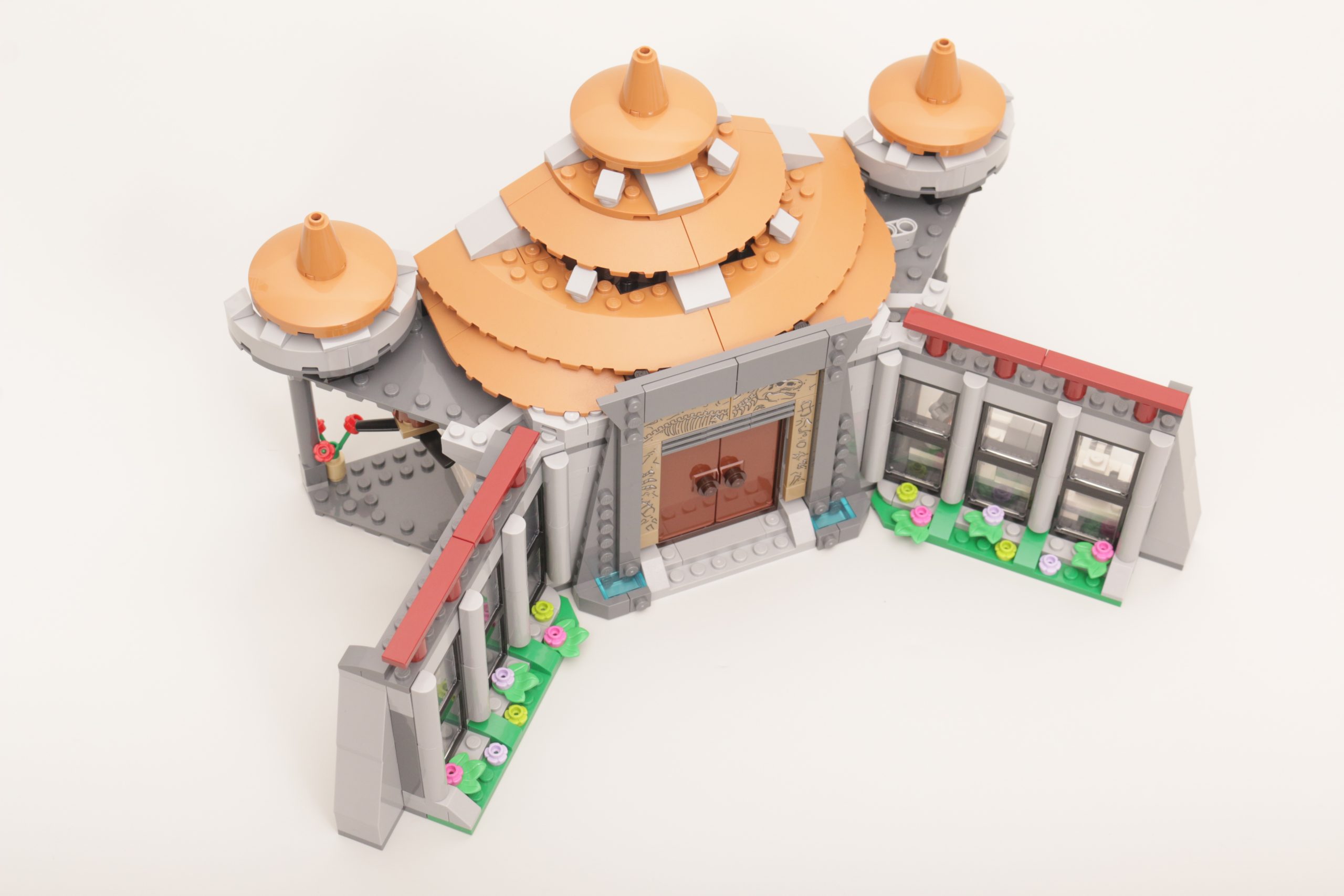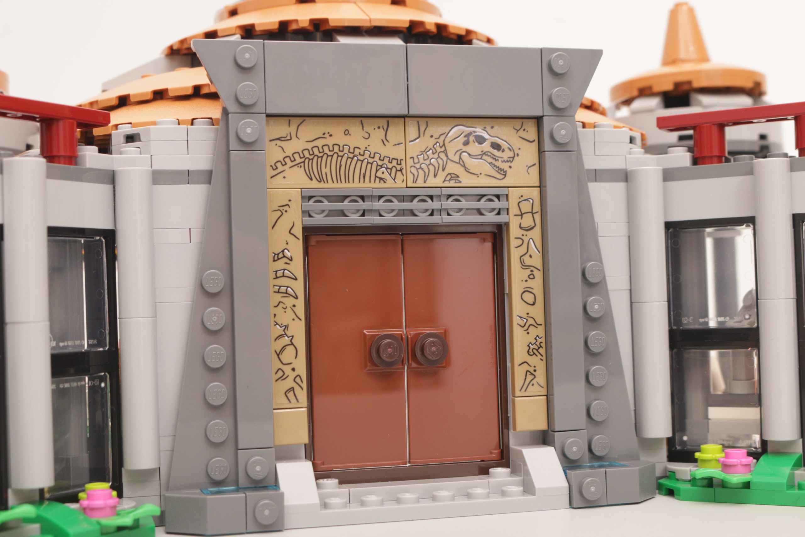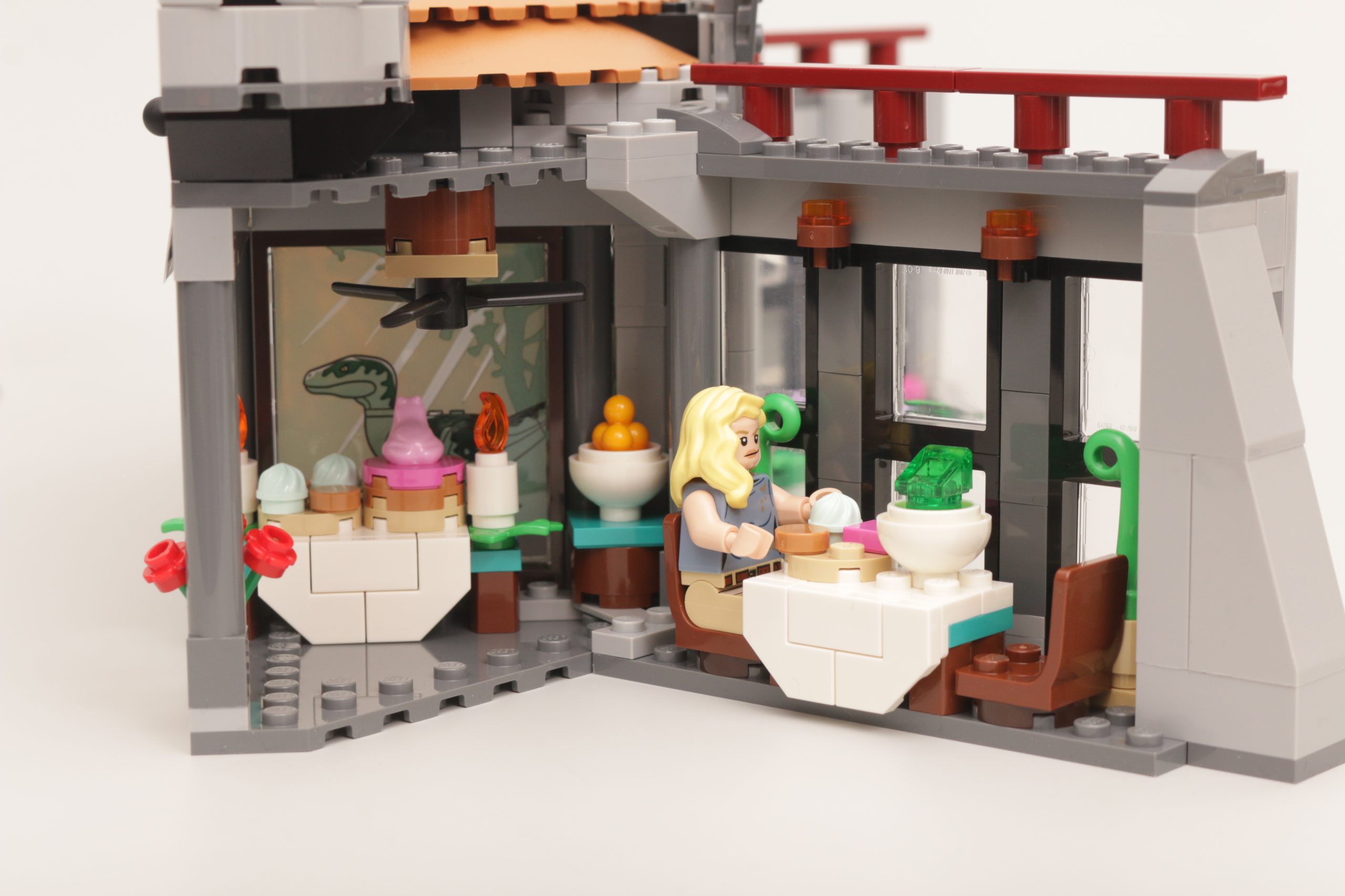 Det er delvis takket være en smart to-i-ett-tilnærming til selve besøkssenteret, med den ytre forsiden av bygningen mer eller mindre gjenskapt i mikroskala (ta en titt igjen hvis du ikke tror oss) og et interiør som er vennligere for minifigurskala. Det er kompromisser å inngå i denne tilnærmingen, men det betyr at den sentrale konstruksjonen til settet ser like bra ut som den spiller (om ikke bedre) – vi har hatt fasader og lekesett fra dette temaet tidligere som har slitt med å finner den samme balansen, og det er generelt bra oppnådd her. Spesielt er eksteriøret til besøkssenteret veldig smart satt sammen og bemerkelsesverdig spot on i samsvar med det vi så på skjermen, i farger, form og viktige forskjellige detaljer.