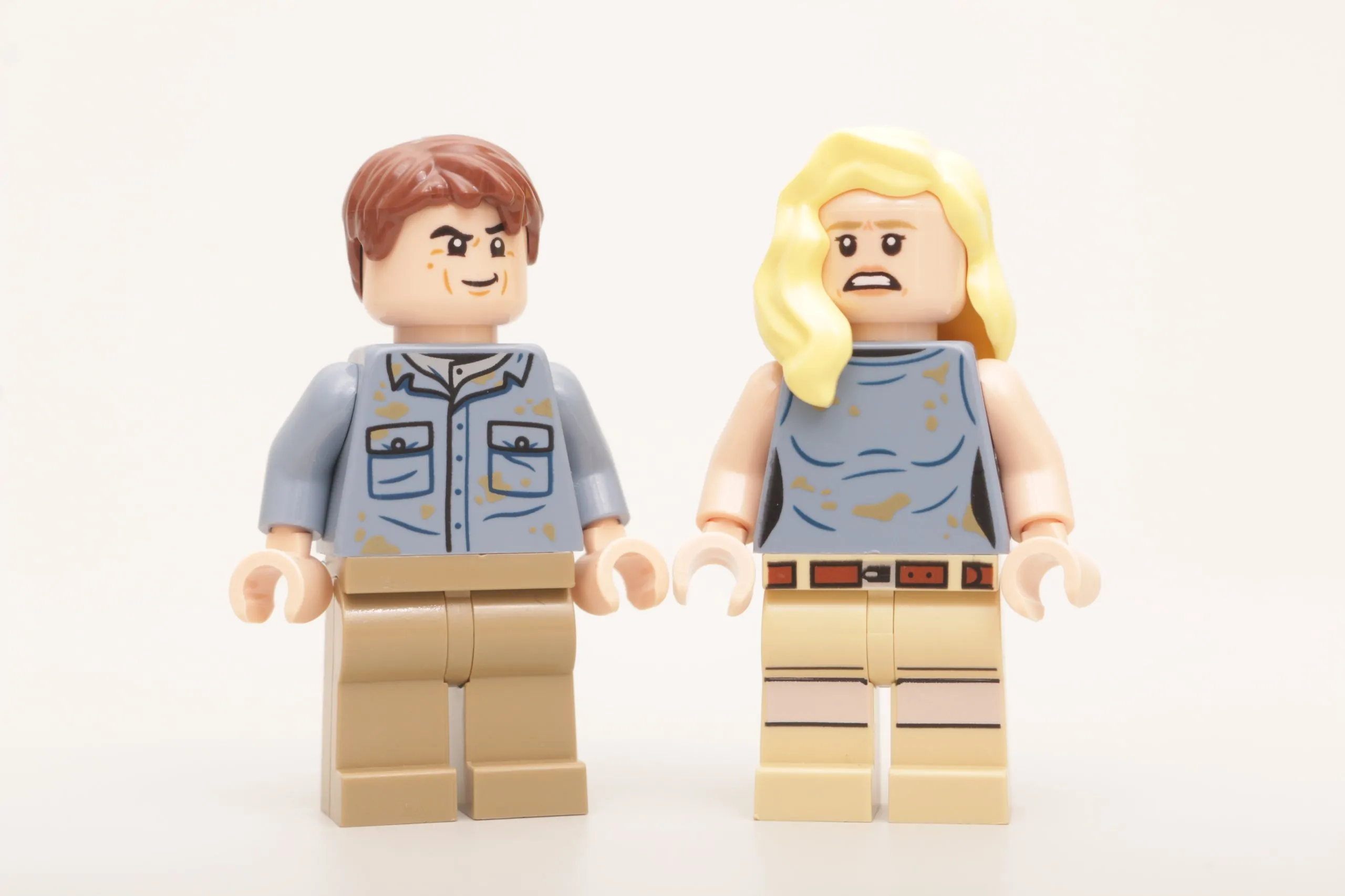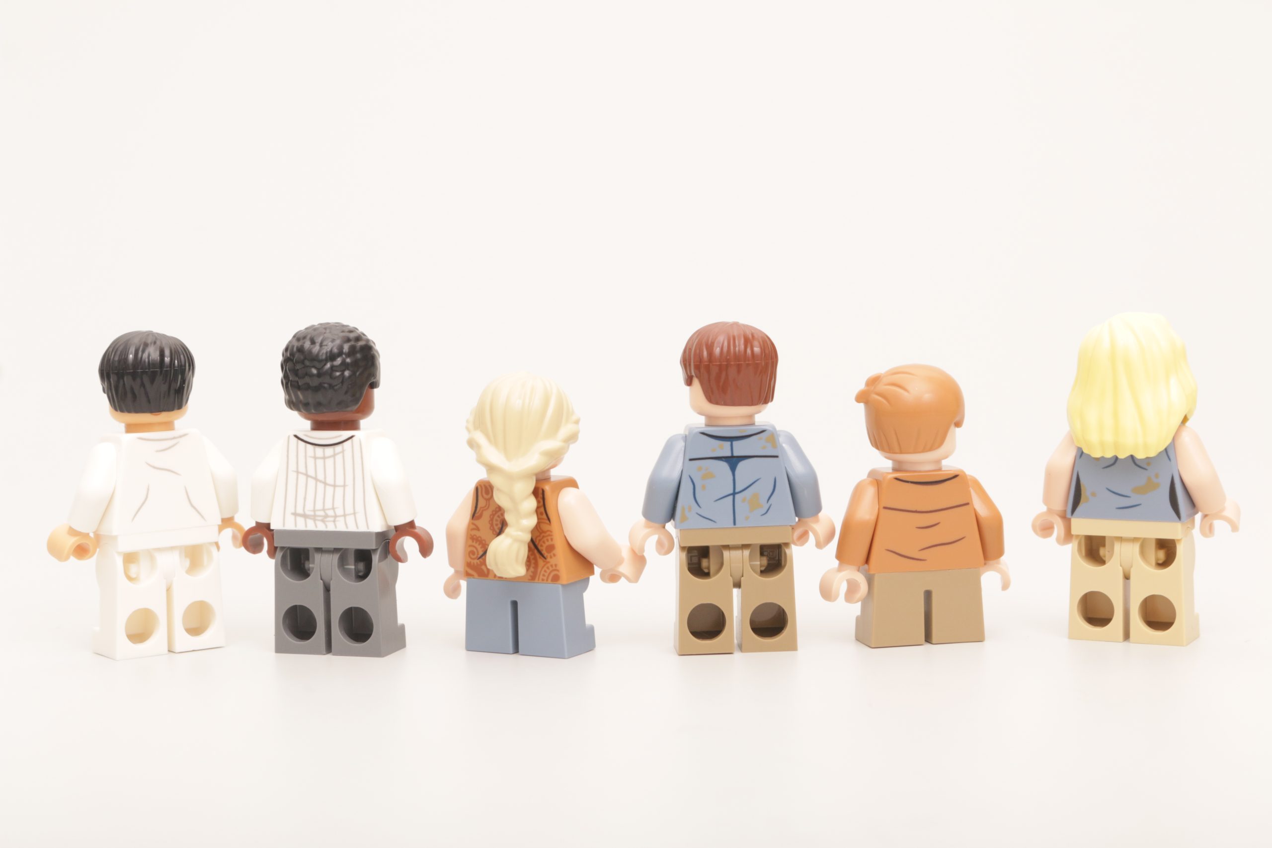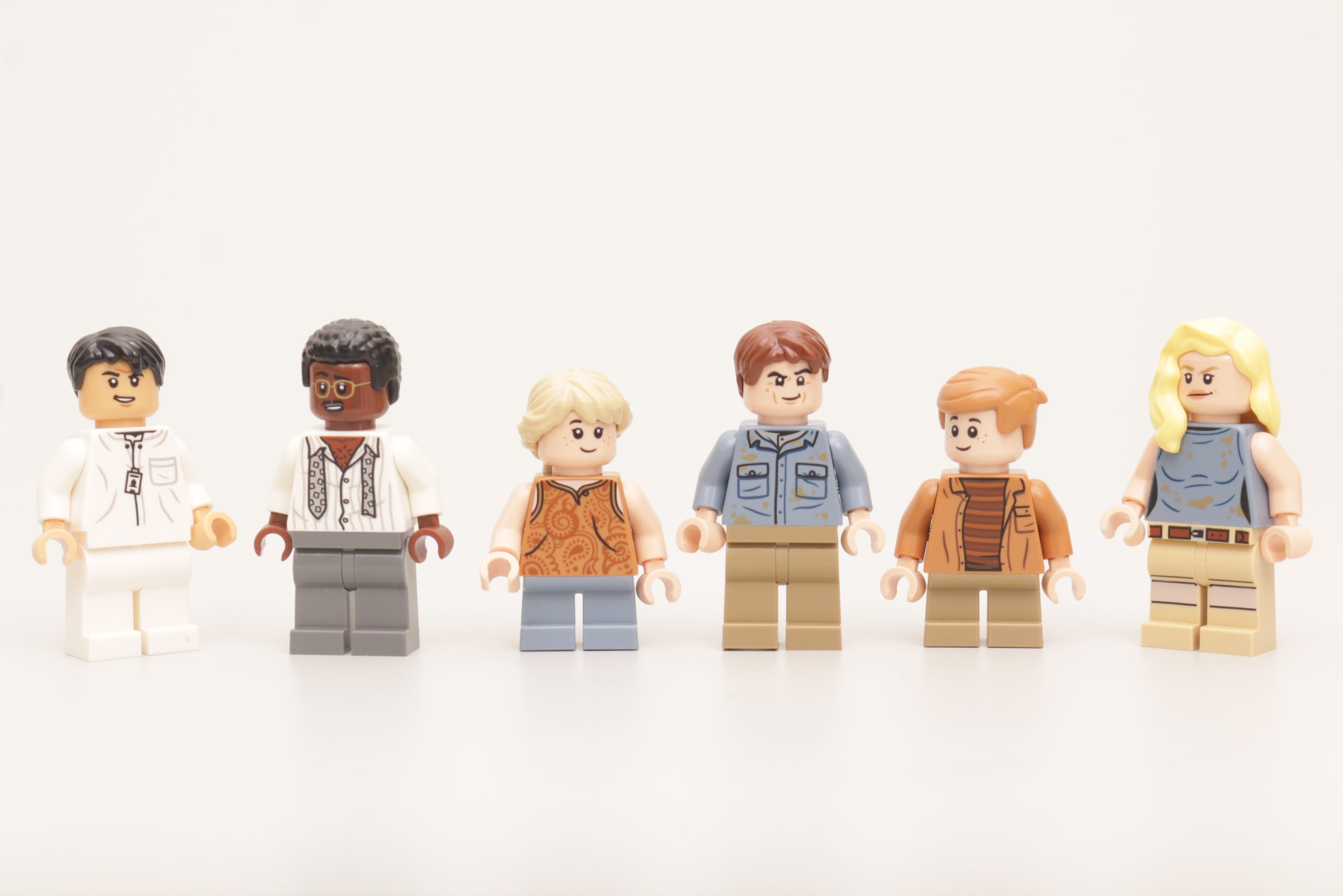 Lego Jurassic Park 76961 Besøkssenter: T. rex & Raptor Attack kommer med et betydelig utvalg av seks minifigurer og to dinosaurer. Minifigurdesignene for Dr. Ellie Sattler, Dr. Alan Grant, Dr. Henry Wu, John 'Ray' Arnold og søsknene Lex og Tim Murphy er alle unike og pent fanget i LEGO-form, spesielt Alan og Ellie som har fått mørkere, gjørmefargede overkropper for å gjenspeile den rufsete tilstanden de er i av filmen. Det er et subtilt designvalg, men et som gjør en stor forskjell for å virkelig plassere karakterene i LEGO-settet på det nøyaktige, tiltenkte øyeblikket i filmen.