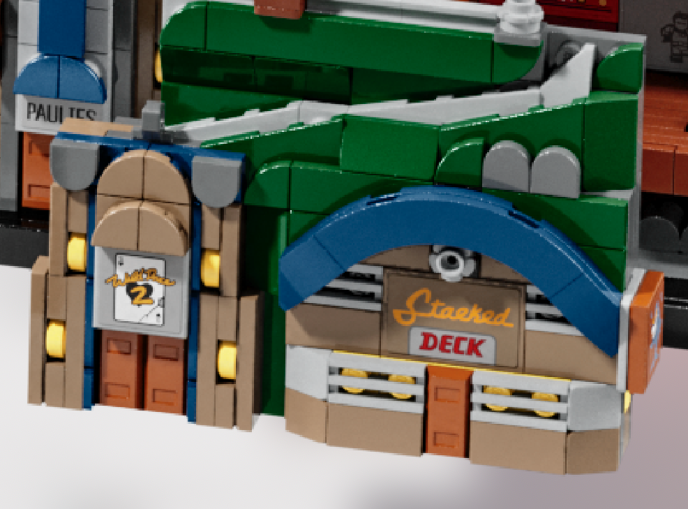 For eksempel er det Arkham Asylum på venstre side, med Poison Ivys planter som vokser ut av den avtagbare fasaden, eller Palace Theatre, som for tiden er vert for Joker's Laff Off-konkurransen og en plakat av Grey Ghost (som uttrykt i B). :TAS av Adam West) på utsiden.