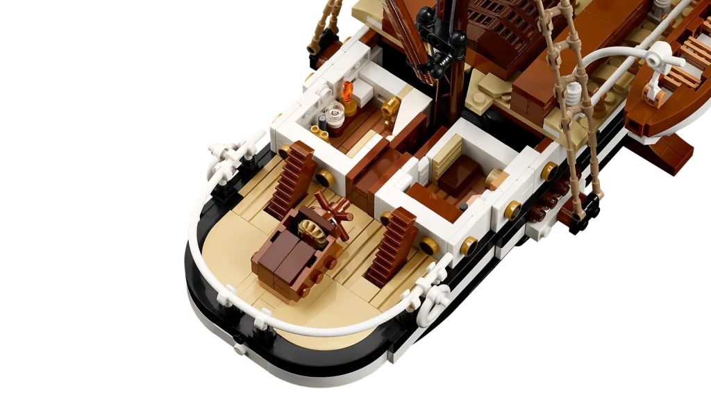 I tillegg til hovedskipet er det også fire avtakbare livbåter, et lenket anker og et skipshjul som kobles til et fungerende ror. Med nok detaljer til å tilfredsstille de med lidenskap for nautisk historie, inkluderer den også et byggbart stativ for utstillingsmuligheter.