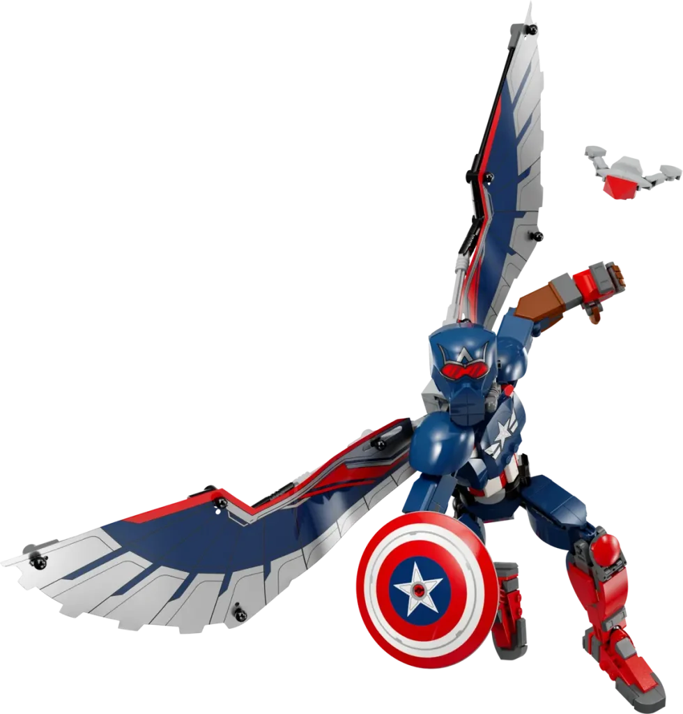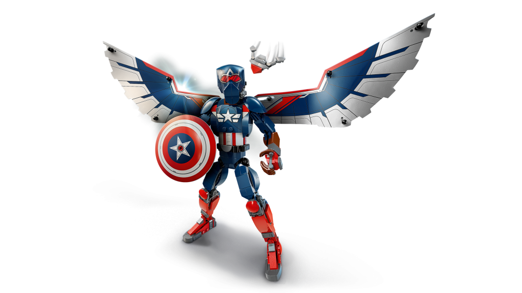 76296 Ny Captain America konstruksjonsfigur heter annerledes enn 76258 Captain America bygningsfigur, som viser Sam Wilson med skjoldet i stedet. Vingene til denne figuren er avtakbare og Redwing-dronen kan også løsne fra ham. Med 359 stykker kan du forhåndsbestille den nå for £29.99 / $34.99 / €34.99 og den lanseres 1. desember.