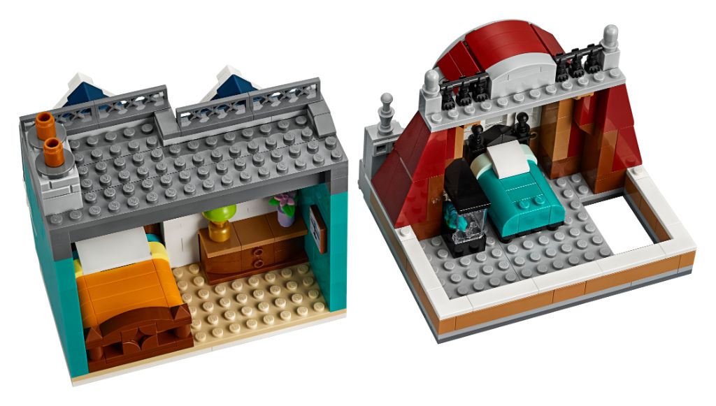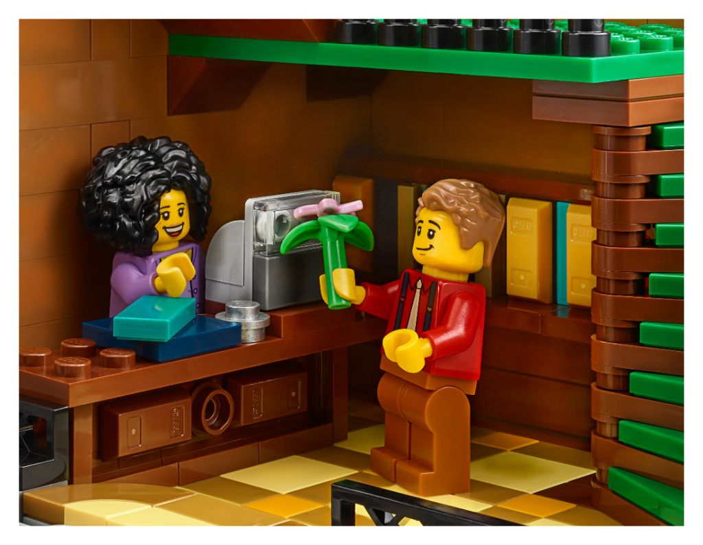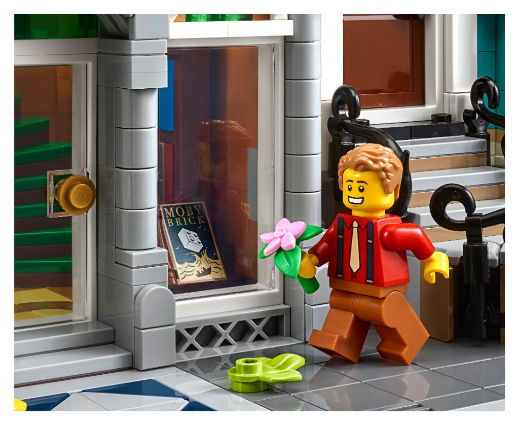 Settet på 2,504 XNUMX deler bygger en tre-etasjes bokhandel og rekkehus inspirert av europeisk arkitektur. Den måler 29 cm høy, 25 cm bred og 25 cm dyp.