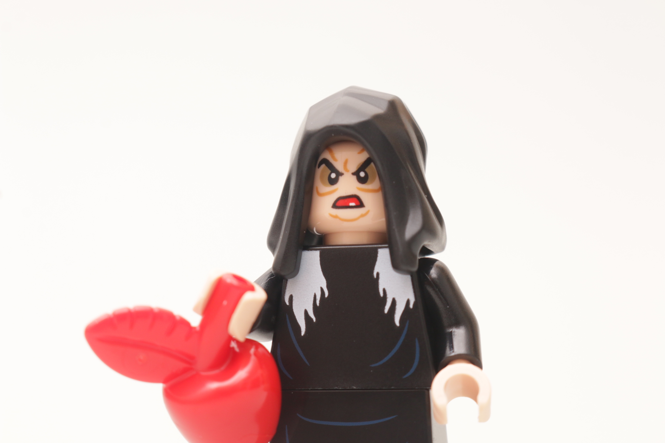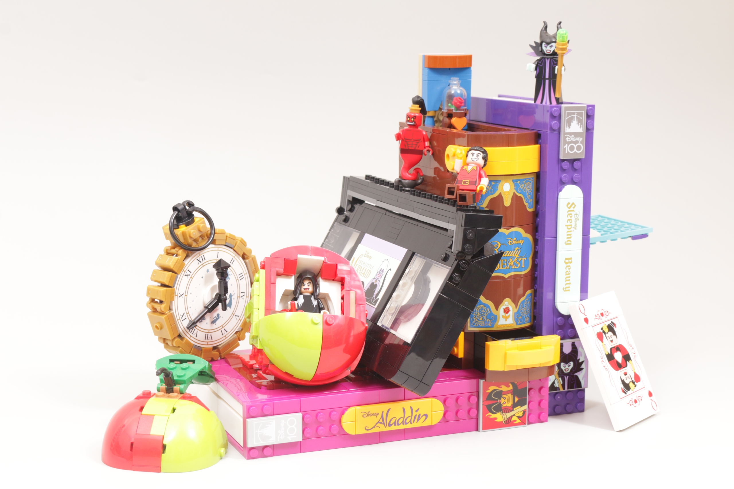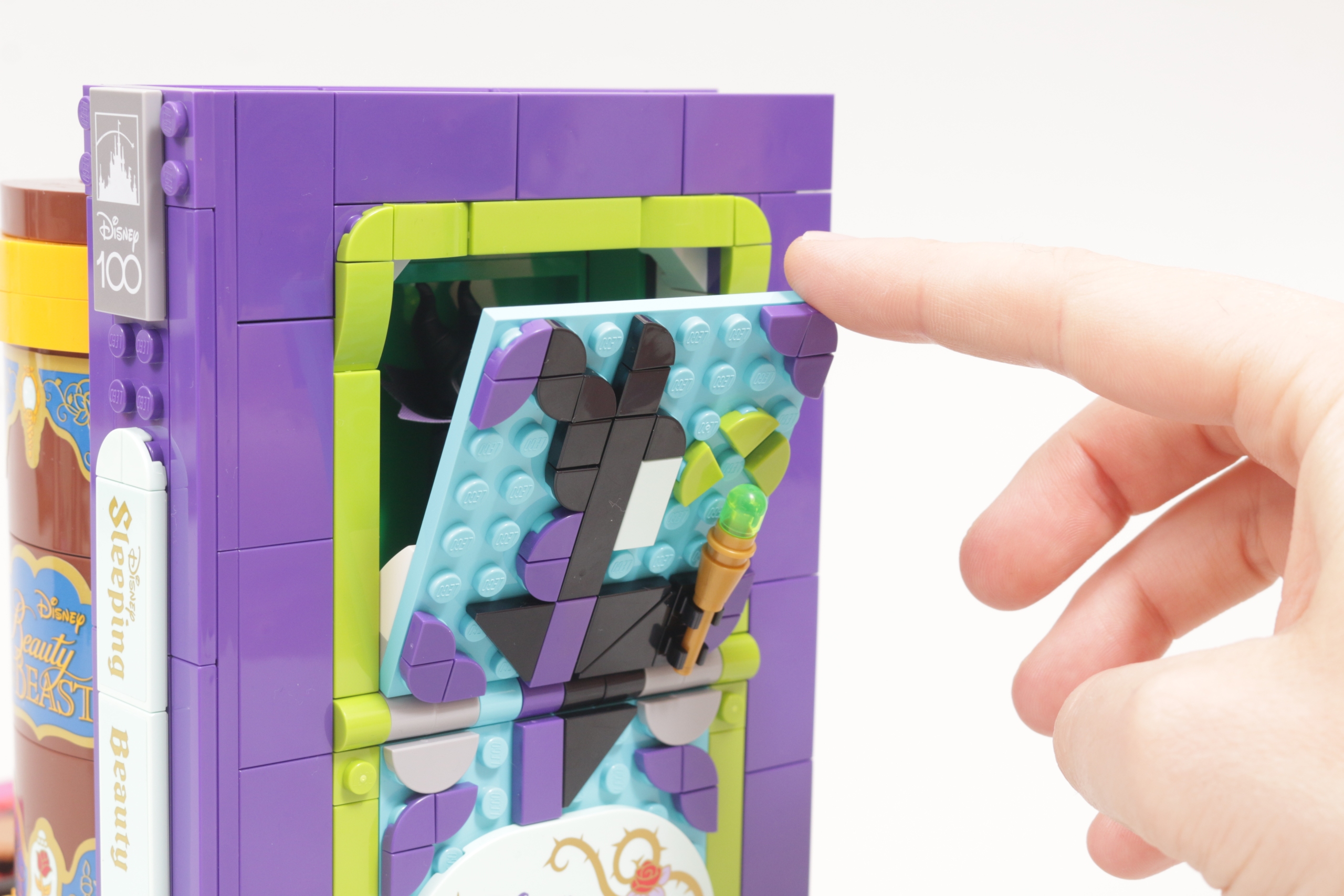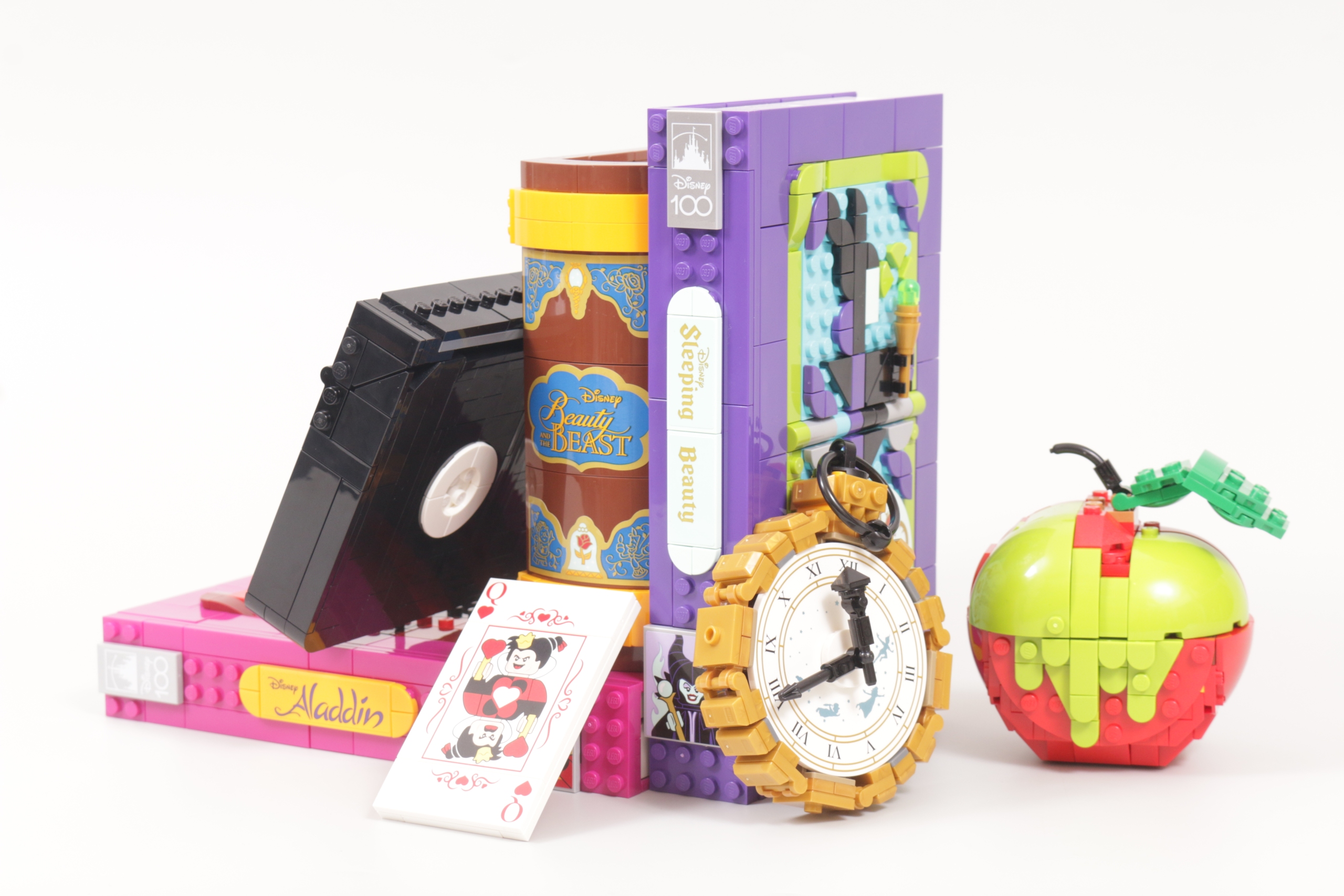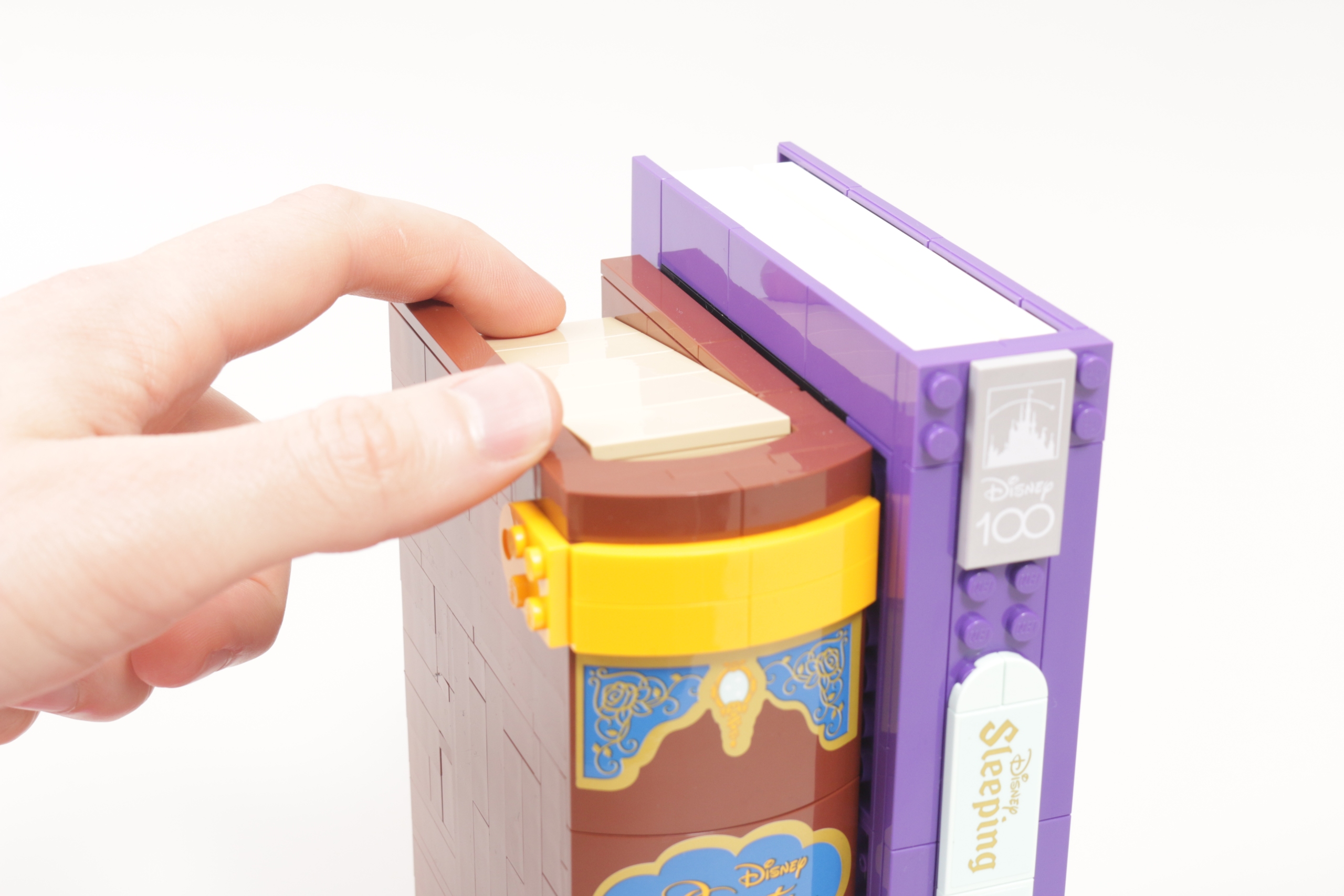 Det som ser ut som et gifteple i 1:1-skala løftet rett ut av Snøhvit (ikke bit i det...) har gjemt seg inne i den onde dronningen i forkledningen hennes, mens den vipper ned den øverste enden av VHS-båndet (som virkelig gjør det ser ut som en VHS-kassett for de av dere som er gamle nok til å vite hvordan en så ut) avslører en sekvens av LEGO-baserte filmrullebilder fra Den lille havfruen. I mellomtiden inneholder Skjønnheten og udyret-boken ikke bare et lite hull for Gaston å passe inn i, men også en flip-up mikro-konstruksjon av den innkapslede rosen fra historien, mens både Tornerose- og Aladdin VHS-dekselet er utmerket tema i design til filmene deres og hovedskurkene, og begge inneholder små områder som også huser respektive minifigurer.