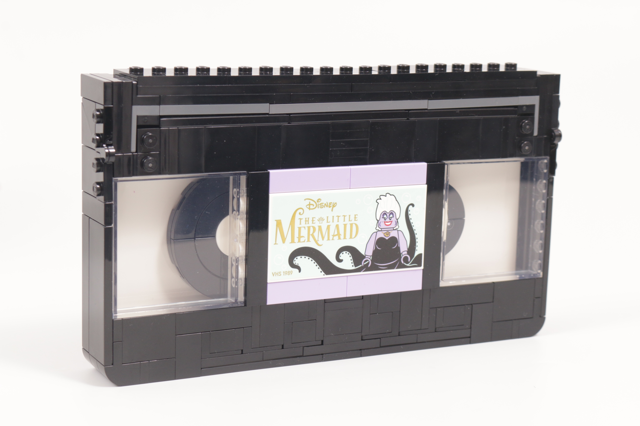 I mellomtiden snakker VHS-kassetten til The Little Mermaid og to VHS-deksler til Sleeping Beauty og Aladdin like mye om verden utenfor filmene – og deres popularitet – som verdener skapt av disse filmene. Den lille havfruen var en game-changer for Disney da den ble utgitt på VHS, noe som førte til de tre tiårene siden samlinger på samlinger av alle Disney klassikere som skal utgis for hjemmemedier. Når du vet det, er det mer fornuftig å bygge noe slikt av LEGO, selv om du først forventet at du ville bygge en sjøhest, musling eller trefork.