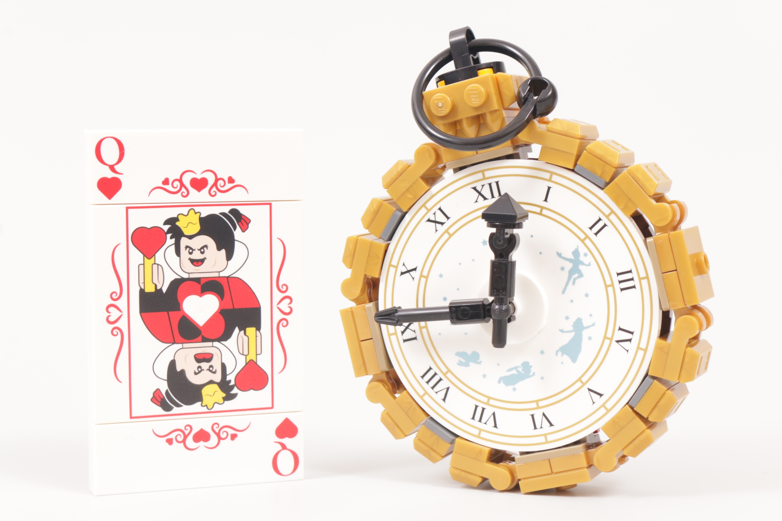 For gjenstander som lommeur og spillekort, oppnås dette gjennom ryddig grafisk design som så tydelig og smart plasserer deg i verdenene de refererer til, fra uttrykket til Hjertedronningen på kortet til silhuettene til Peter, Wendy, John og Michael på tvers av klokken. Og for eple-, bok-, VHS- og VHS-dekslene handler det om hvilke referanser og skjulte funksjoner som LEGO-designteamet har jobbet inn i ellers svært troverdige og nøyaktige modeller.