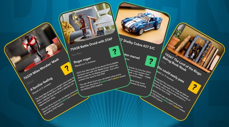 LEGO-settets samleapp Brick Search siste seksjon har nettopp blitt oppdatert med en kvartett med nye utgivelser, inkludert 10357 Shelby Cobra 427 S/C, 76329 Miles Morales' maske, 10367 Ringenes herre: Balrog bokkrok og 75428 Kampdroide med STAP. Bak hvert sett finner du vurderinger fra ledende uavhengige LEGO-anmeldere, sammen med en klosspoengsum beregnet ved hjelp av poengsummer fra hver ekspert.