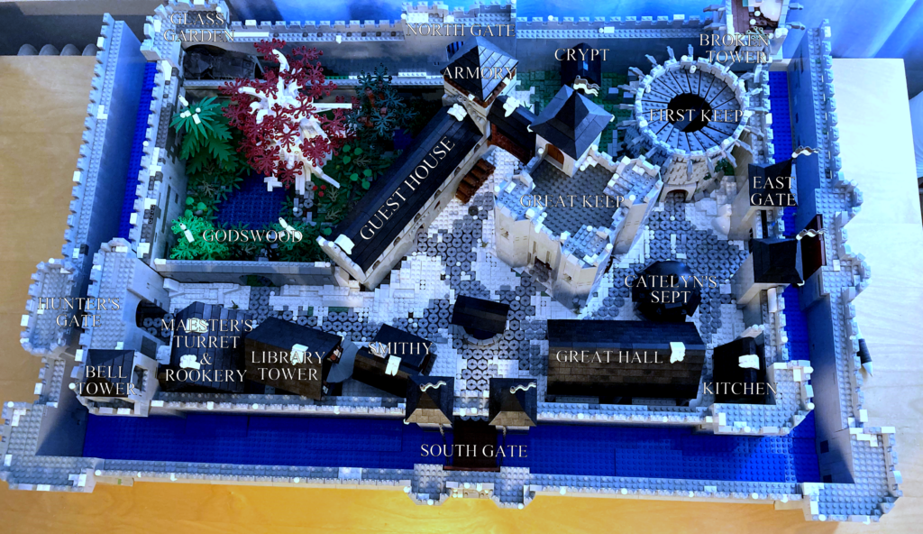 For de som ikke er kjent med den nøyaktige utformingen av festningen, er det også et praktisk kart med alle elementene tydelig lagt ut. Akkurat som i bøkene består det meste av bygningen av grått og hvitt for å representere den flate steinen og snøhaugene.