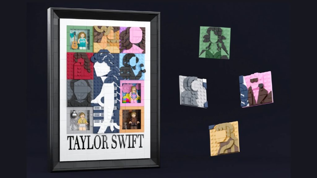 Denne modellen med fokus på minifigurer hyller de ulike epokene i Taylor Swifts karriere, fra debutalbumet til det tiende albumet. Det at den kan vises på en vegg, gjør at den skiller seg ut sammenlignet med de andre musikalske settene på LEGO. Ideas også.