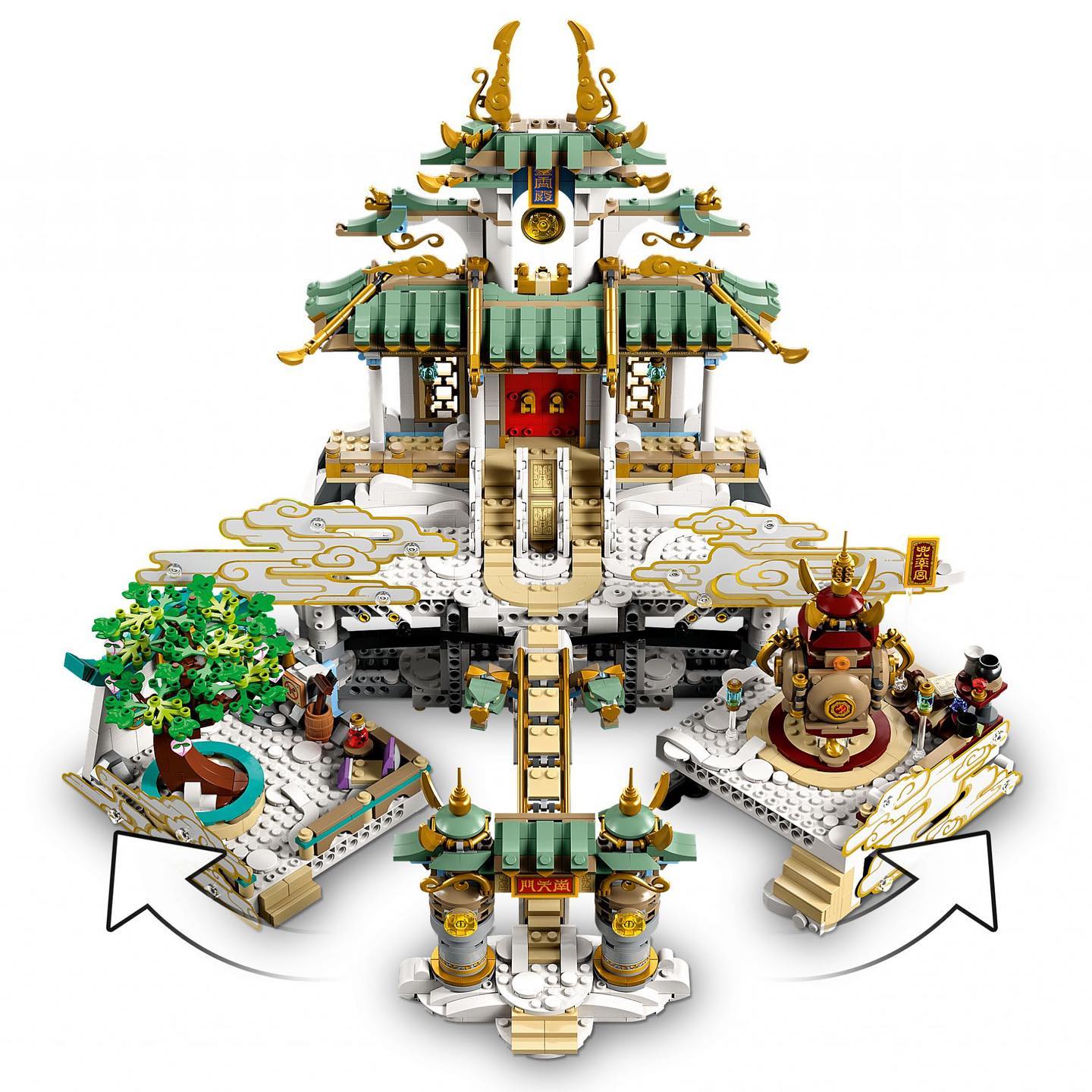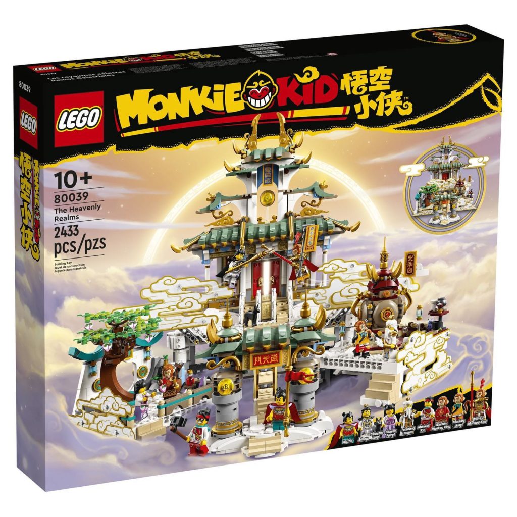 Mens 80038 Monkie Kid's Team Van fokuserer på det teknologiske elementet av Monkie Kid, 80039 De himmelske rikene ser ut til å ta en side ut av boken 80024 Det legendariske blomster- og fruktfjellet, og lener seg sterkt inn i legendene ved å skildre gudenes himmelske riker.