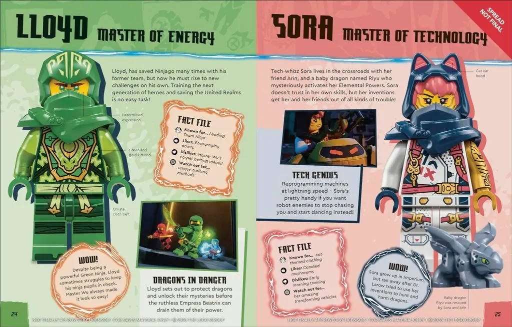 I tillegg vil LEGO NINJAGO Dragons Rising Character Guide også komme med en Sora-minifigur som til dags dato kun er inkludert med ett mye dyrere sett. Denne versjonen av karakteren er en av 21 minifigurer som befolkes 71799 NINJAGO City Markeder, en 2,560-delers konstruksjon som for øyeblikket er priset til £319.99 / $369.99 / €369.99.