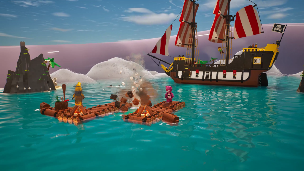 Den første i en rekke nye lekeopplevelser som kommer til LEGO Fortnite i 2024, 'LEGO Raft Survival' og 'LEGO Obby Fun' er inspirert av barndomsminnene til spillets utviklere. LEGO Raft Survival er forankret rundt LEGO Pirates, og gir spillere i oppdrag å overleve ombord på en flåte – og samle ressurser for å bygge flere flåter – mens de tar ild fra kaptein Blackbeard ombord Black Seas Barracuda.
