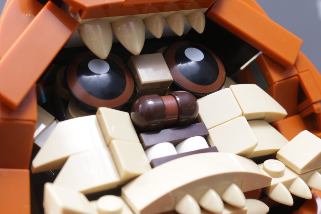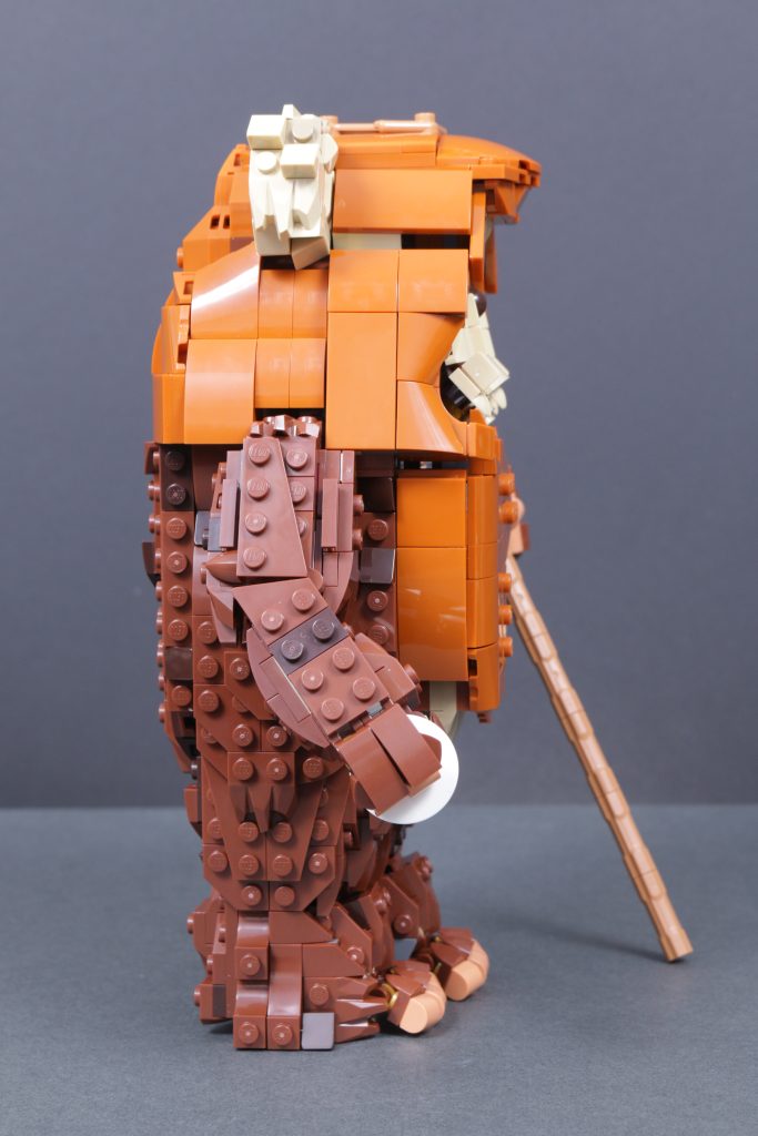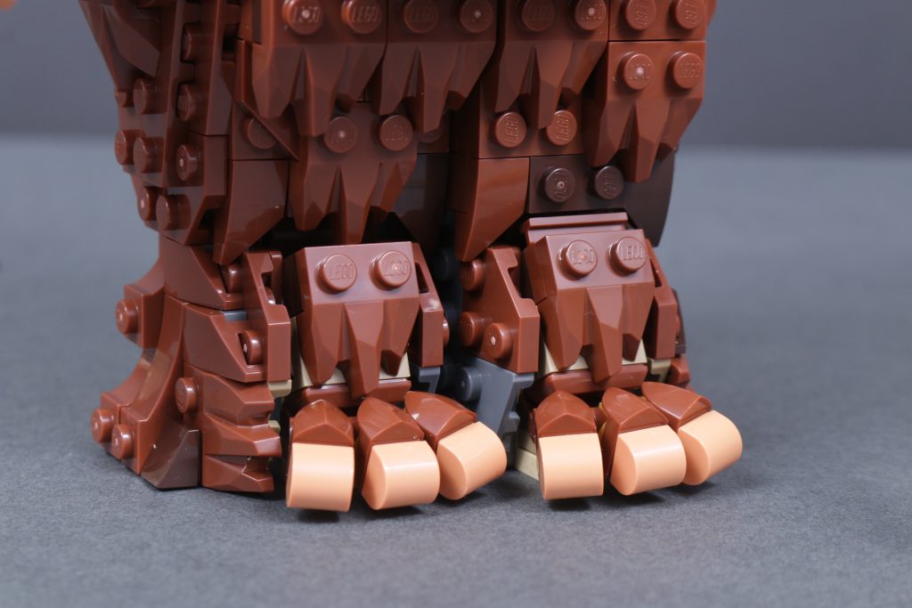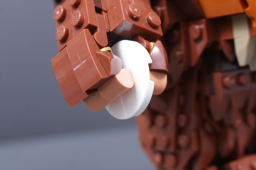 For det meste er det greit, fordi konstruksjonen er troverdig på mange måter når det gjelder å fange detaljene og utseendet til karakteren – pelseffekten er fint gjengitt over hele kroppen hans, mens tærne og fingrene hans er de søteste med tanke på hvordan de er gjenskapt i LEGO-form. På samme måte er kjeledressen han har på seg utmerket detaljert og designet for å kontrastere med pelsen under og se ut til å ligge oppå den som et tynnere lag. Måten den er formet rundt hodet hans er også veldig smart.