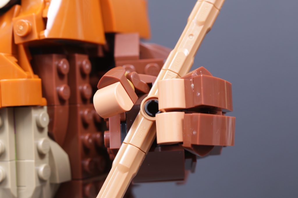 Wickets ører er svært detaljerte og overraskende tekniske i designet, men de passer veldig fint sammen. Likevel, til tross for at alt fungerer på et nivå vi med glede kan si er autentisk, er det ansiktet der modellen faller fra hverandre, og det ser mer ut som LEGO enn Wicket.