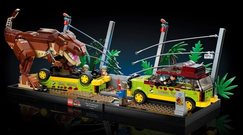 76956 T. rex Breakout gjenskaper en ikonisk Jurassic Park-scene i klosser med en LEGO for voksne bygg det fokuset på detaljer og nøyaktighet, med et sitat fra scenen som fullfører visningen.