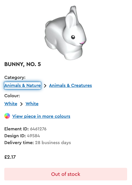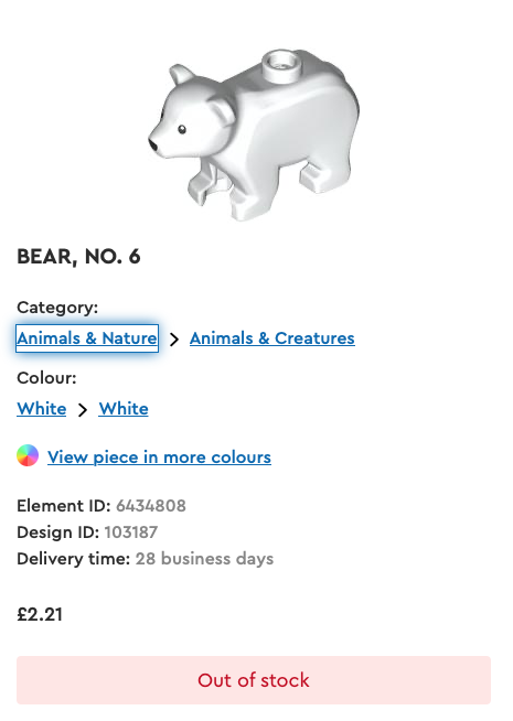 Men mange av de nye Velg en murstein tillegg er allerede oppført som utsolgt, med noen av de mer populære varene borte foreløpig. Disse inkluderer slike som babysel, isbjørn og Bunny fra City, Monkie Kid og Ninjago minifigurtilbehør, pluss mange andre.