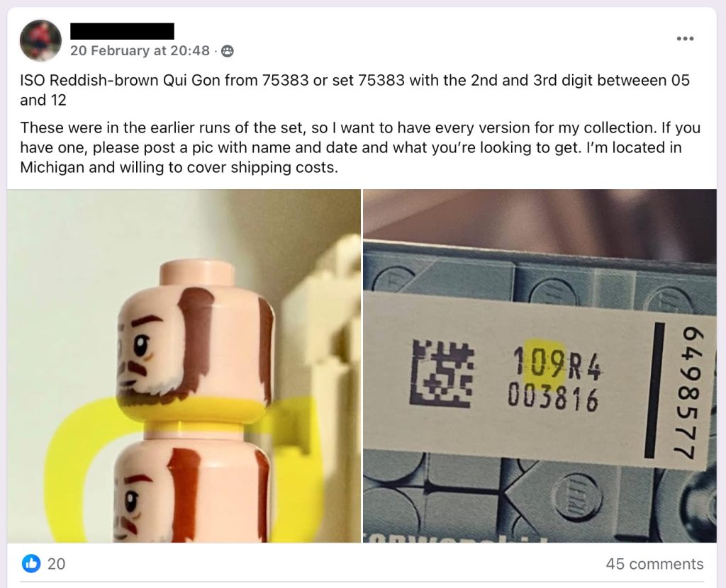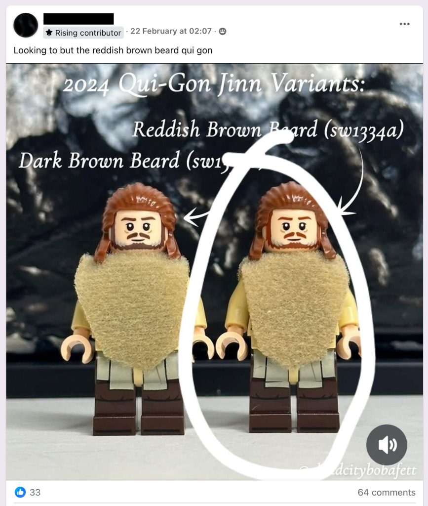 Det er vanskelig å si hvem som først la merke til varianten og når, men BrickLink hadde publisert to separate produktoppføringer for Qui-Gon Jinn senest i januar, med en håndfull rødbrune versjoner som selges for alt fra £11 til £42. Deretter tørket forsyninger helt opp – men etter hvert som ryktet om den sjeldnere varianten begynte å spre seg, eksploderte sosiale medier med samlere som gransket den spesielle brune nyansen til Qui-Gons skjegg.